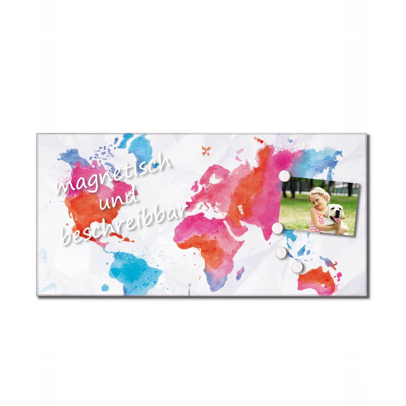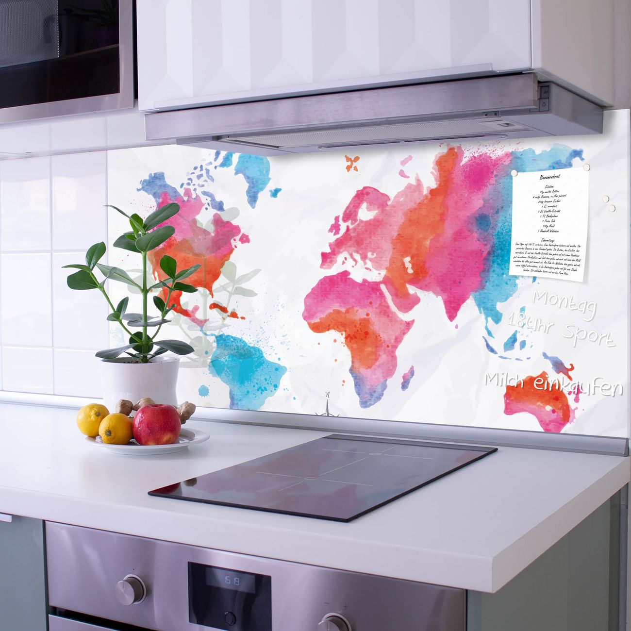 Die Küchenrückwand ist eine elegante Mehrzwecktafel: als Spritzschutz hinter Herd oder Waschbecken, hält Notizen wie ein Memoboard, ist beschreibbar mit Kreidestiften oder Whiteboard-Markern, sieht umwerfend als Glasbild aus. Sie besteht aus gehärtetem Glas, die Rückwand aus einem magnetischen Stahlblech. Durch die superflache Bauweise haben Sie die Wahl aus einer Vielzahl von Befestigungsmöglichkeiten. Sie können die Küchenrückwand mit einem Montagekleber superflach an die Wand kleben oder Sie wählen eines unserer passenden Befestigungssets, welches eine optimale Montage garantiert. Die Küchenrückwand besteht aus zertifiziertem Sicherheitsglas. Durch die mitgelieferten 4 Neodym-Magnete ist Ihre Glas Magnettafel sofort einsatzbereit.