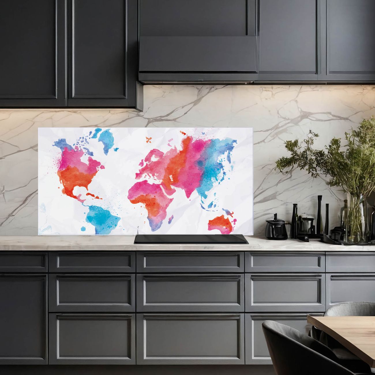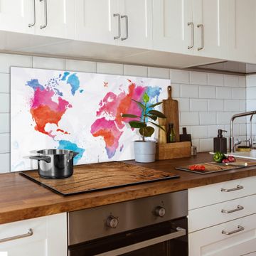 Küchenrückwand Glas Motiv Weltkarte pastell