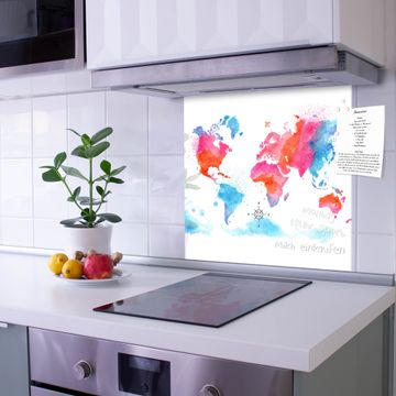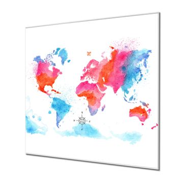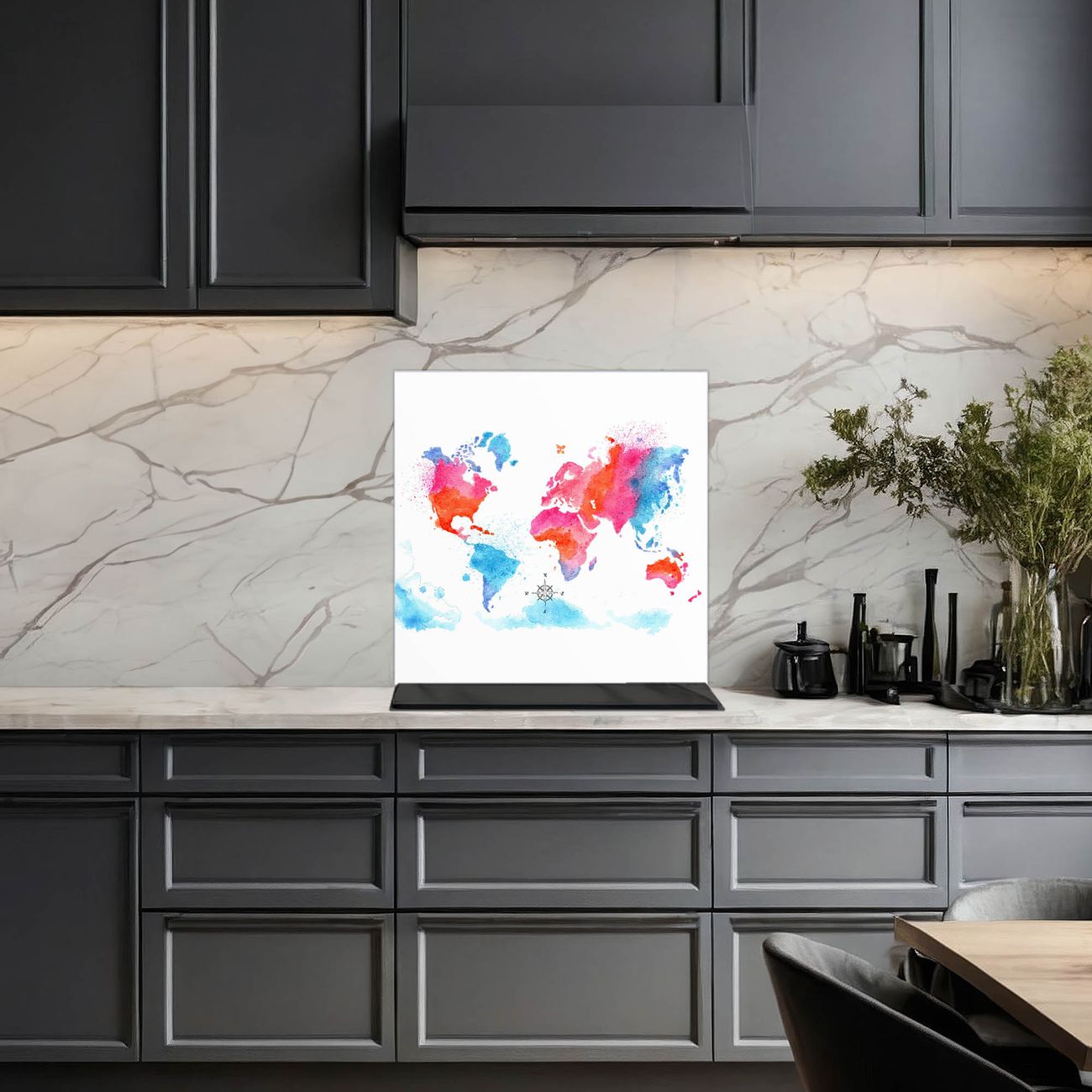 Küchenrückwand Glas Motiv Weltkarte pastell