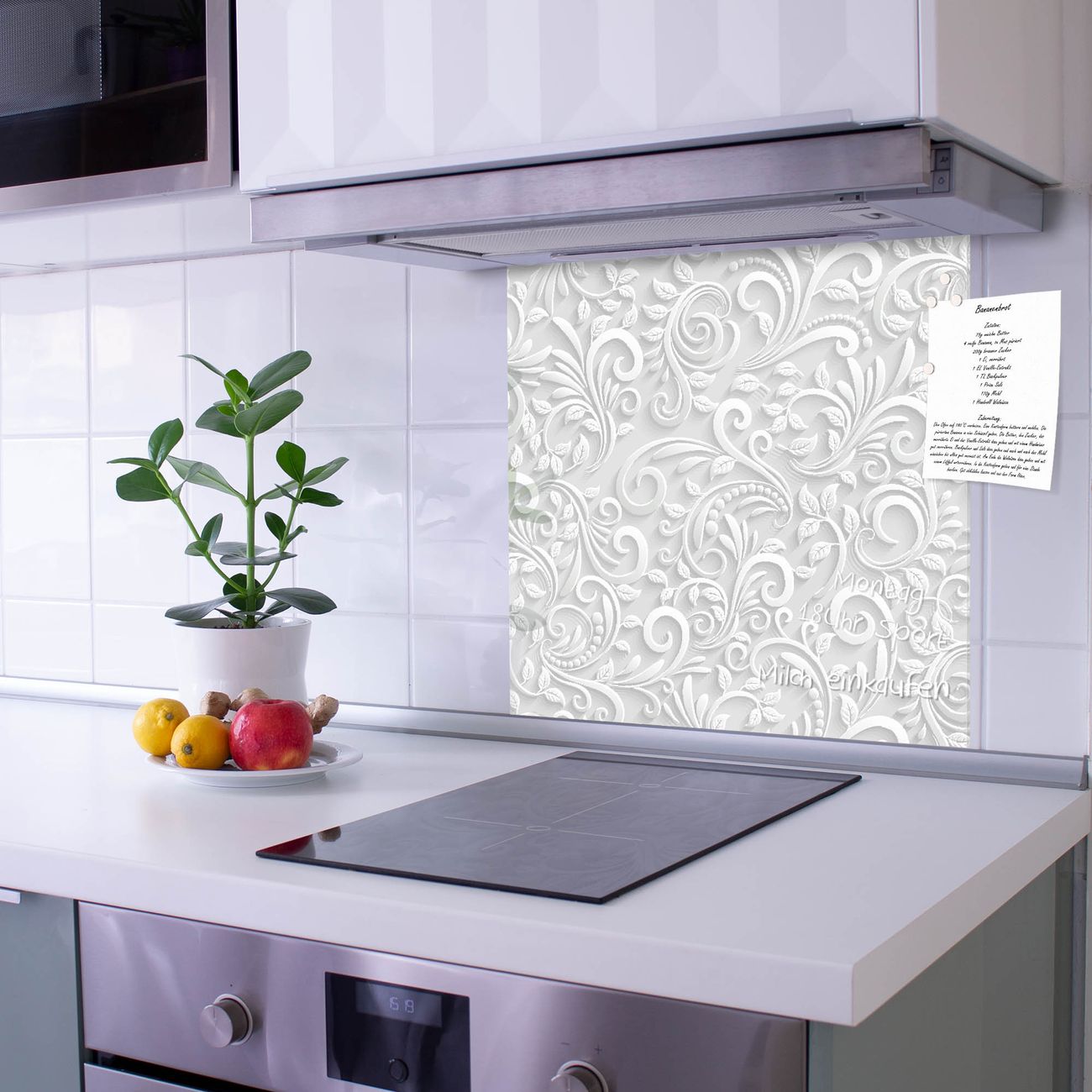 Die Küchenrückwand ist eine elegante Mehrzwecktafel: als Spritzschutz hinter Herd oder Waschbecken, hält Notizen wie ein Memoboard, ist beschreibbar mit Kreidestiften oder Whiteboard-Markern, sieht umwerfend als Glasbild aus. Sie besteht aus gehärtetem Glas, die Rückwand aus einem magnetischen Stahlblech. Durch die superflache Bauweise haben Sie die Wahl aus einer Vielzahl von Befestigungsmöglichkeiten. Sie können die Küchenrückwand mit einem Montagekleber superflach an die Wand kleben oder Sie wählen eines unserer passenden Befestigungssets, welches eine optimale Montage garantiert. Die Küchenrückwand besteht aus zertifiziertem Sicherheitsglas. Durch die mitgelieferten 4 Neodym-Magnete ist Ihre Glas Magnettafel sofort einsatzbereit.