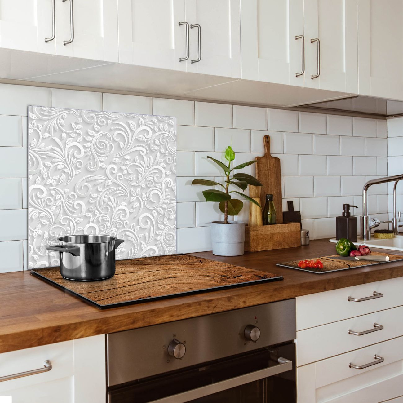 Küchenrückwand Glas Motiv White Swirl