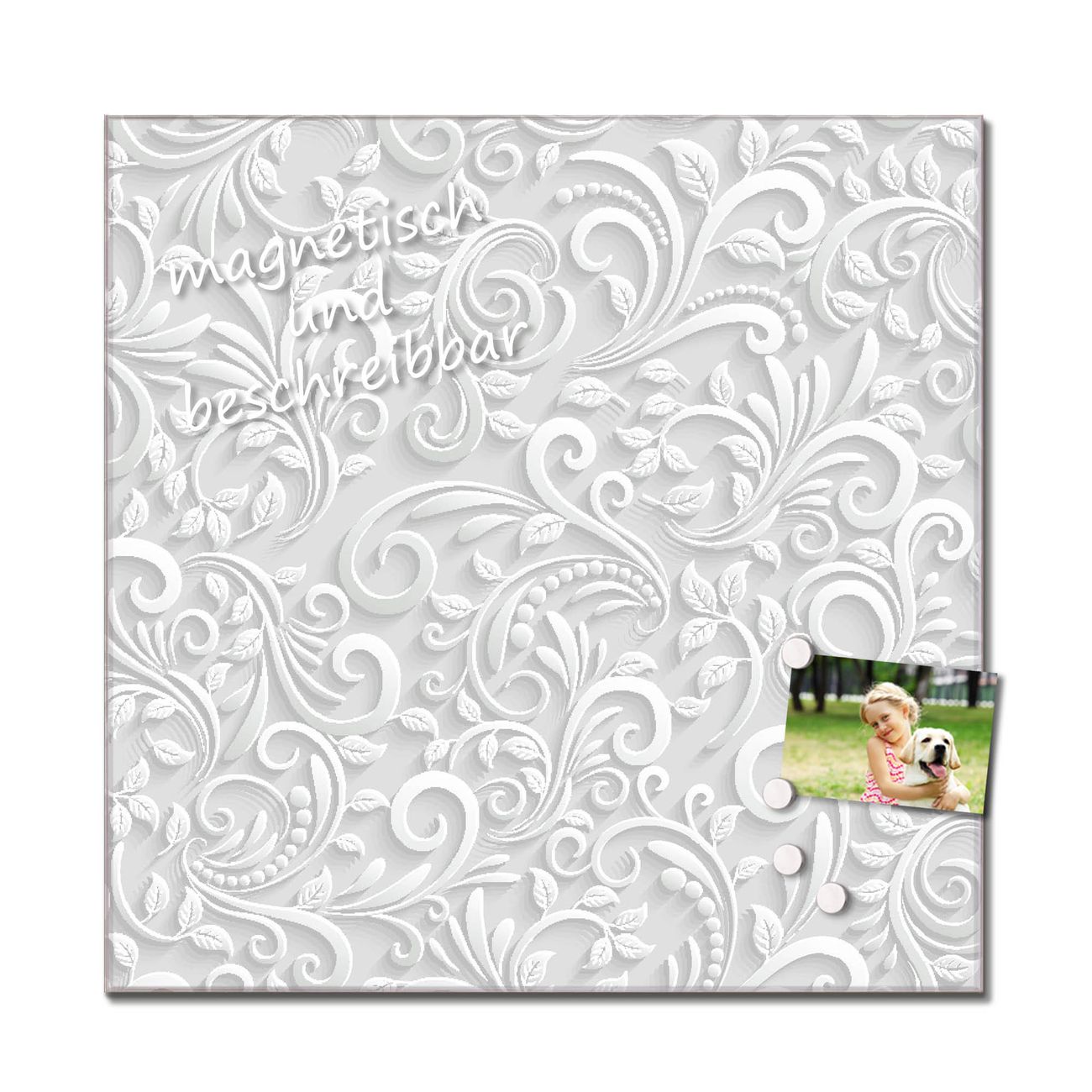- Eigenschaften: beschreibbar, magnetisch, kratzfest