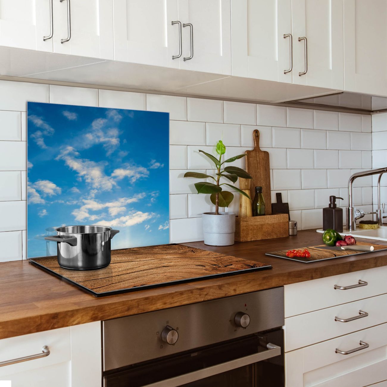 Die banjado Glas Küchenrückwand in verschiedenen Größen mit Motiv Wolken 11 schützt Ihre Küchenfliesen vor Fettspritzern oder Wasserflecken. Der Spritzschutz ist gleichzeitig magnetisch und hält Ihre Rezepte oder Einkaufslisten. 4 Neodym-Magnete und 1 Kreidestift liegen bereits bei. Leuchtende Motive und hochwertiges Material machen den Spritzschutz zum Designobjekt. Das dekorative Glasbild gibt Ihrer Küche ein individuelles Erscheinungsbild. Abgerundete Kanten und Sicherheitsglas sorgen für einen sicheren Einsatz.