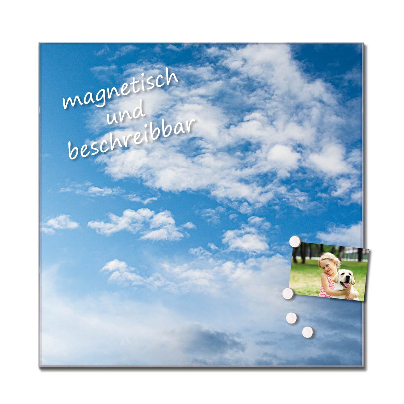 Bitte beachten Sie, dass ausschließlich spezielle Magnete an der Glastafel haften! Wir empfehlen banjado Neodym Magnete, diese sind durch uns auf Wirksamkeit geprüft.