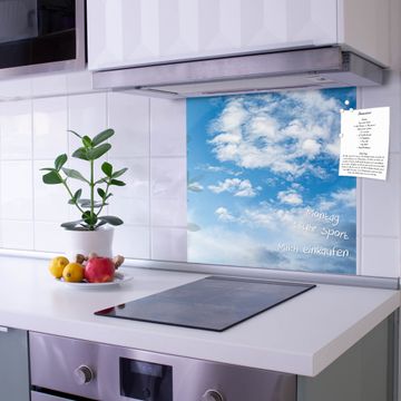 Die banjado Glas Küchenrückwand in verschiedenen Größen mit Motiv Wolken 1 schützt Ihre Küchenfliesen vor Fettspritzern oder Wasserflecken. Der Spritzschutz ist gleichzeitig magnetisch und hält Ihre Rezepte oder Einkaufslisten. 4 Neodym-Magnete und 1 Kreidestift liegen bereits bei. Leuchtende Motive und hochwertiges Material machen den Spritzschutz zum Designobjekt. Das dekorative Glasbild gibt Ihrer Küche ein individuelles Erscheinungsbild. Abgerundete Kanten und Sicherheitsglas sorgen für einen sicheren Einsatz.