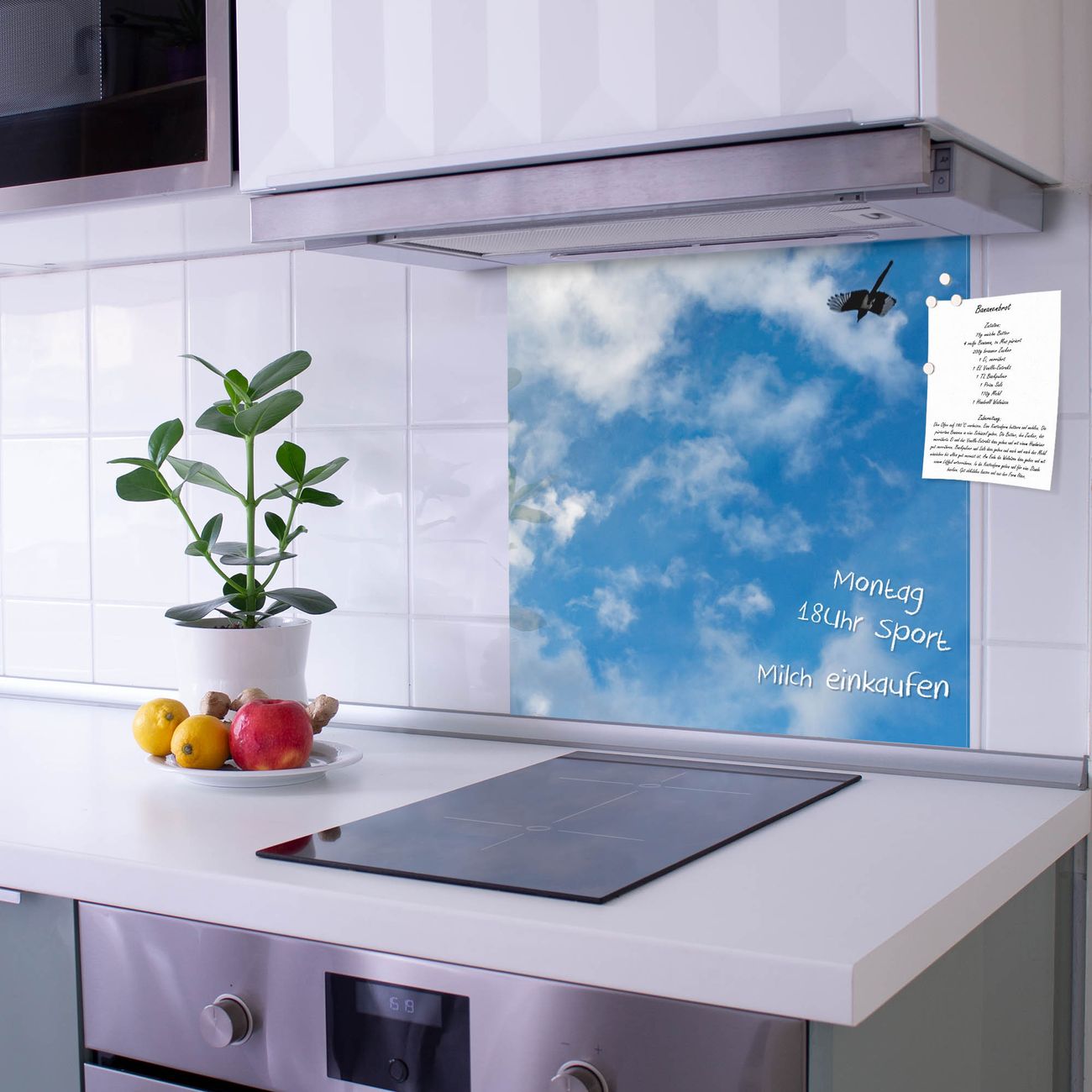 Die Küchenrückwand ist eine elegante Mehrzwecktafel: als Spritzschutz hinter Herd oder Waschbecken, hält Notizen wie ein Memoboard, ist beschreibbar mit Kreidestiften oder Whiteboard-Markern, sieht umwerfend als Glasbild aus. Sie besteht aus gehärtetem Glas, die Rückwand aus einem magnetischen Stahlblech. Durch die superflache Bauweise haben Sie die Wahl aus einer Vielzahl von Befestigungsmöglichkeiten. Sie können die Küchenrückwand mit einem Montagekleber superflach an die Wand kleben oder Sie wählen eines unserer passenden Befestigungssets, welches eine optimale Montage garantiert. Die Küchenrückwand besteht aus zertifiziertem Sicherheitsglas. Durch die mitgelieferten 4 Neodym-Magnete ist Ihre Glas Magnettafel sofort einsatzbereit.