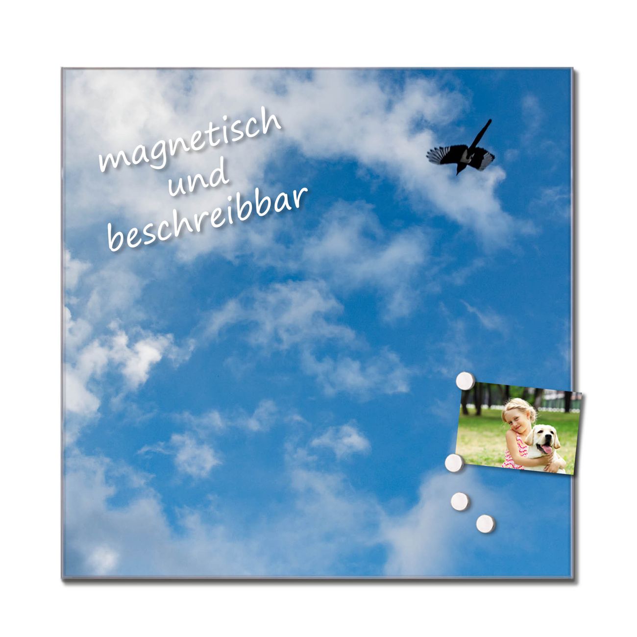 Bitte beachten Sie, dass ausschließlich spezielle Magnete an der Glastafel haften! Wir empfehlen banjado Neodym Magnete, diese sind durch uns auf Wirksamkeit geprüft.
