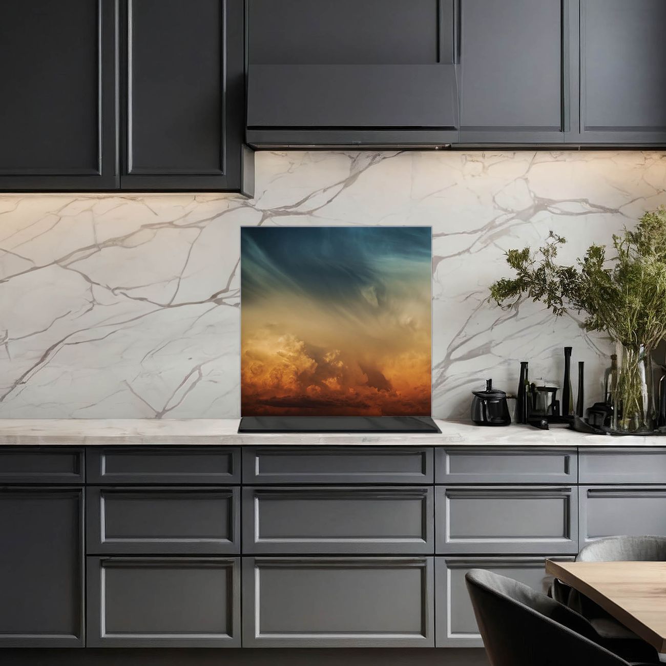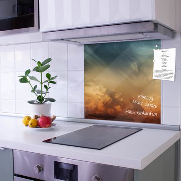 Die banjado Glas Küchenrückwand in verschiedenen Größen mit Motiv Wolken in der Dämmerung schützt Ihre Küchenfliesen vor Fettspritzern oder Wasserflecken. Der Spritzschutz ist gleichzeitig magnetisch und hält Ihre Rezepte oder Einkaufslisten. 4 Neodym-Magnete und 1 Kreidestift liegen bereits bei. Leuchtende Motive und hochwertiges Material machen den Spritzschutz zum Designobjekt. Das dekorative Glasbild gibt Ihrer Küche ein individuelles Erscheinungsbild. Abgerundete Kanten und Sicherheitsglas sorgen für einen sicheren Einsatz.