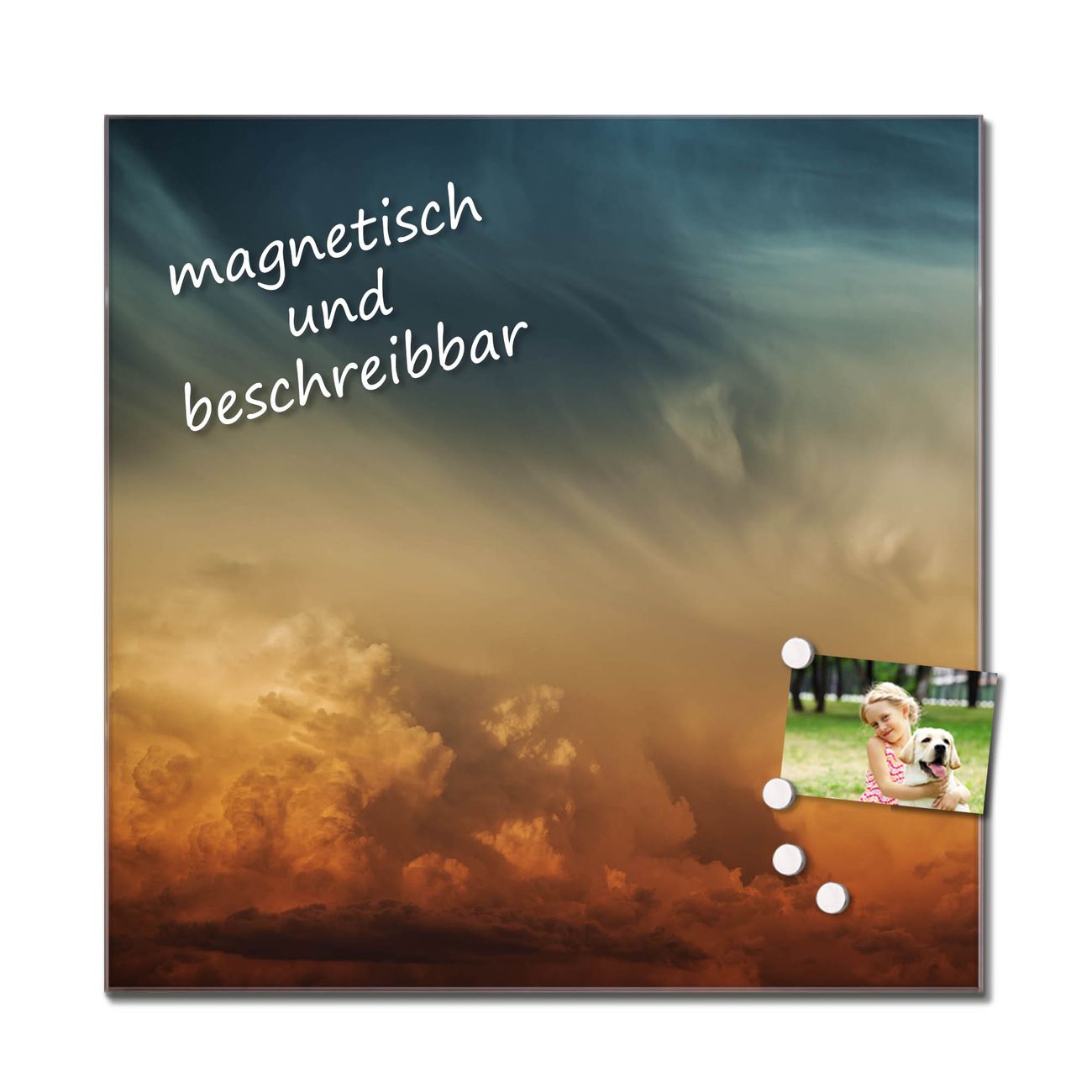 Bitte beachten Sie, dass ausschließlich spezielle Magnete an der Glastafel haften! Wir empfehlen banjado Neodym Magnete, diese sind durch uns auf Wirksamkeit geprüft.