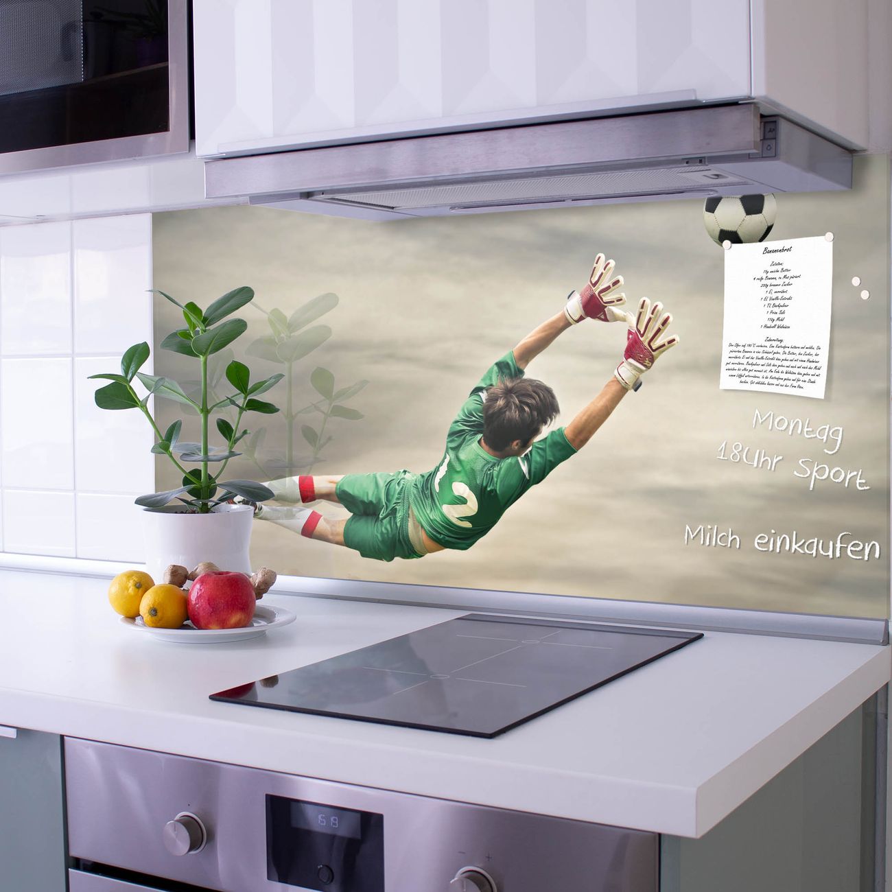 Die Küchenrückwand ist eine elegante Mehrzwecktafel: als Spritzschutz hinter Herd oder Waschbecken, hält Notizen wie ein Memoboard, ist beschreibbar mit Kreidestiften oder Whiteboard-Markern, sieht umwerfend als Glasbild aus. Sie besteht aus gehärtetem Glas, die Rückwand aus einem magnetischen Stahlblech. Durch die superflache Bauweise haben Sie die Wahl aus einer Vielzahl von Befestigungsmöglichkeiten. Sie können die Küchenrückwand mit einem Montagekleber superflach an die Wand kleben oder Sie wählen eines unserer passenden Befestigungssets, welches eine optimale Montage garantiert. Die Küchenrückwand besteht aus zertifiziertem Sicherheitsglas. Durch die mitgelieferten 4 Neodym-Magnete ist Ihre Glas Magnettafel sofort einsatzbereit.