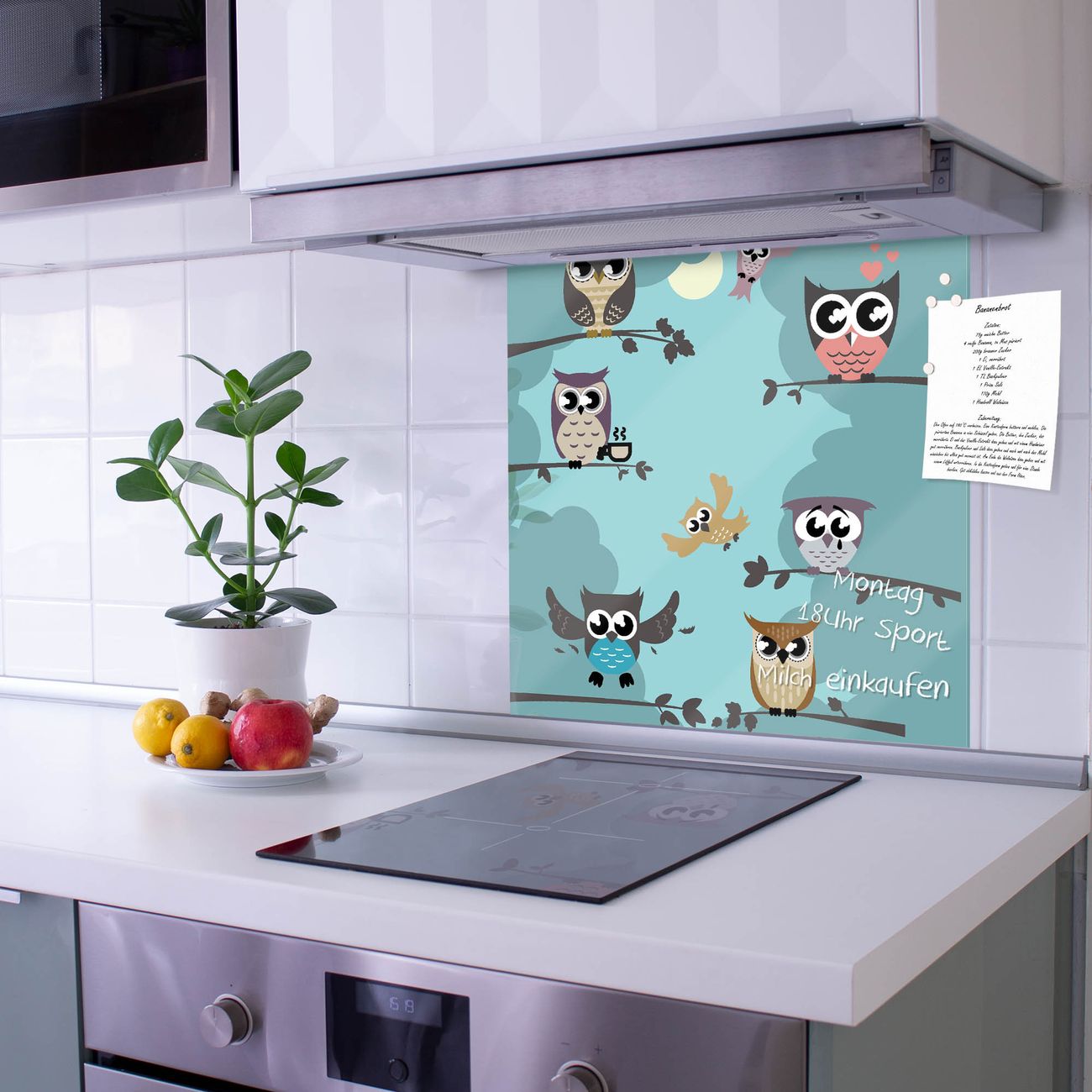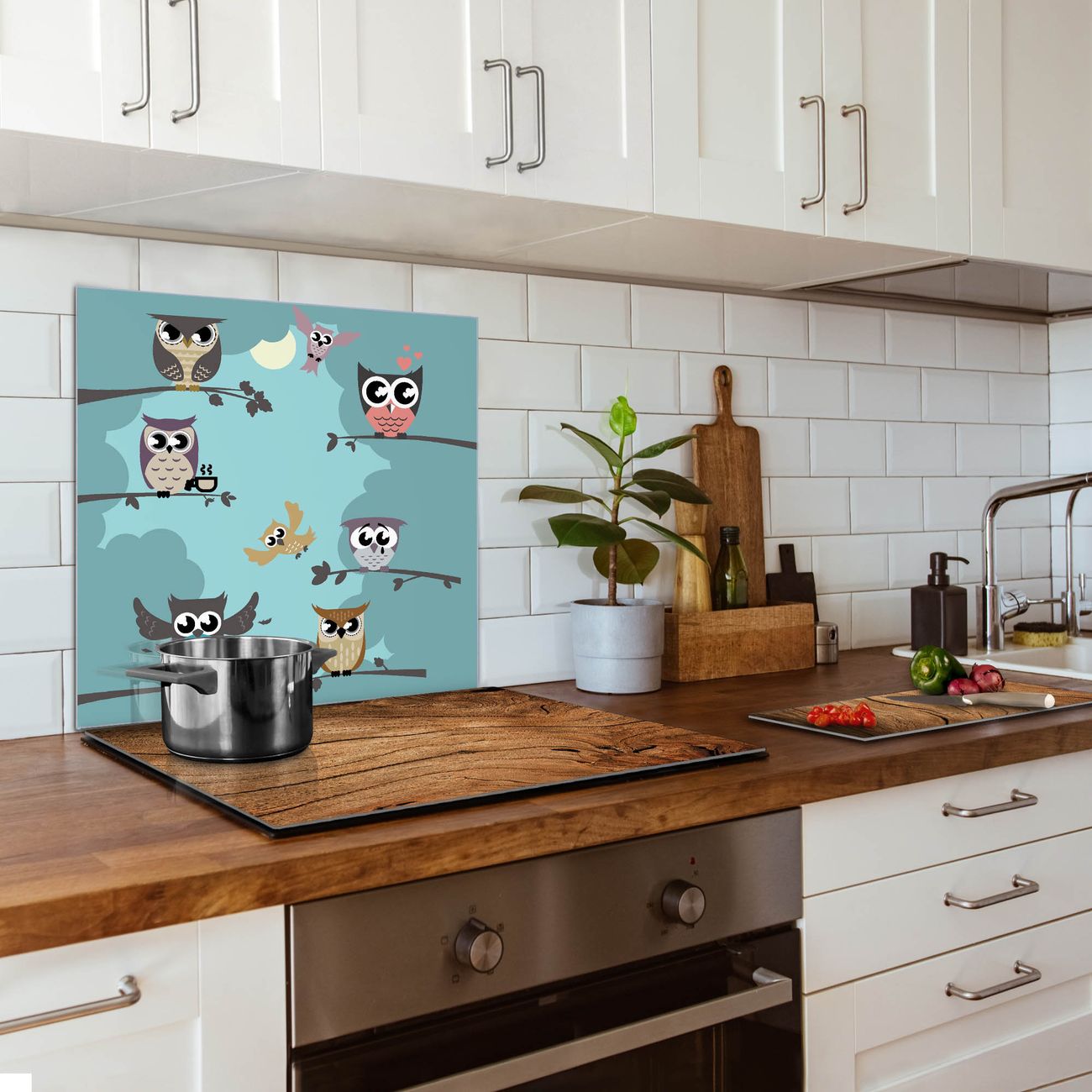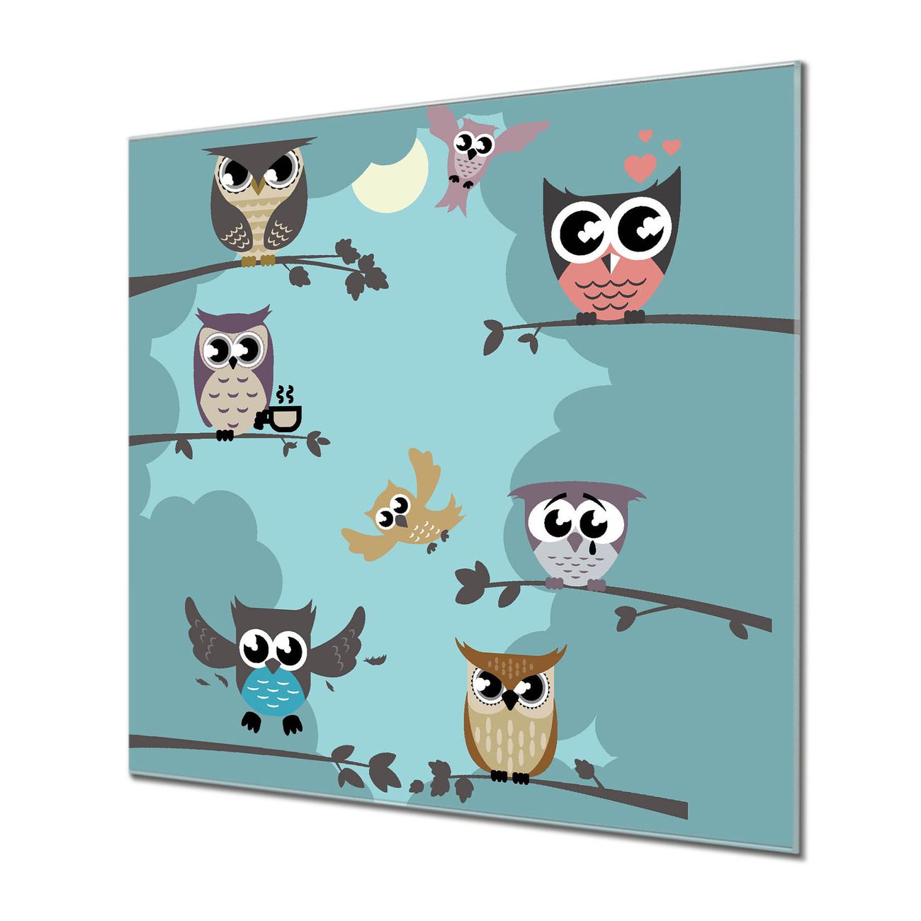 Küchenrückwand Glas Motiv Acht Eulen