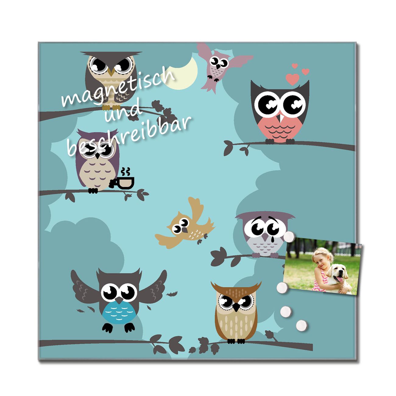 Die banjado Glas Küchenrückwand in verschiedenen Größen mit Motiv Acht Eulen schützt Ihre Küchenfliesen vor Fettspritzern oder Wasserflecken. Der Spritzschutz ist gleichzeitig magnetisch und hält Ihre Rezepte oder Einkaufslisten. 4 Neodym-Magnete und 1 Kreidestift liegen bereits bei. Leuchtende Motive und hochwertiges Material machen den Spritzschutz zum Designobjekt. Das dekorative Glasbild gibt Ihrer Küche ein individuelles Erscheinungsbild. Abgerundete Kanten und Sicherheitsglas sorgen für einen sicheren Einsatz.