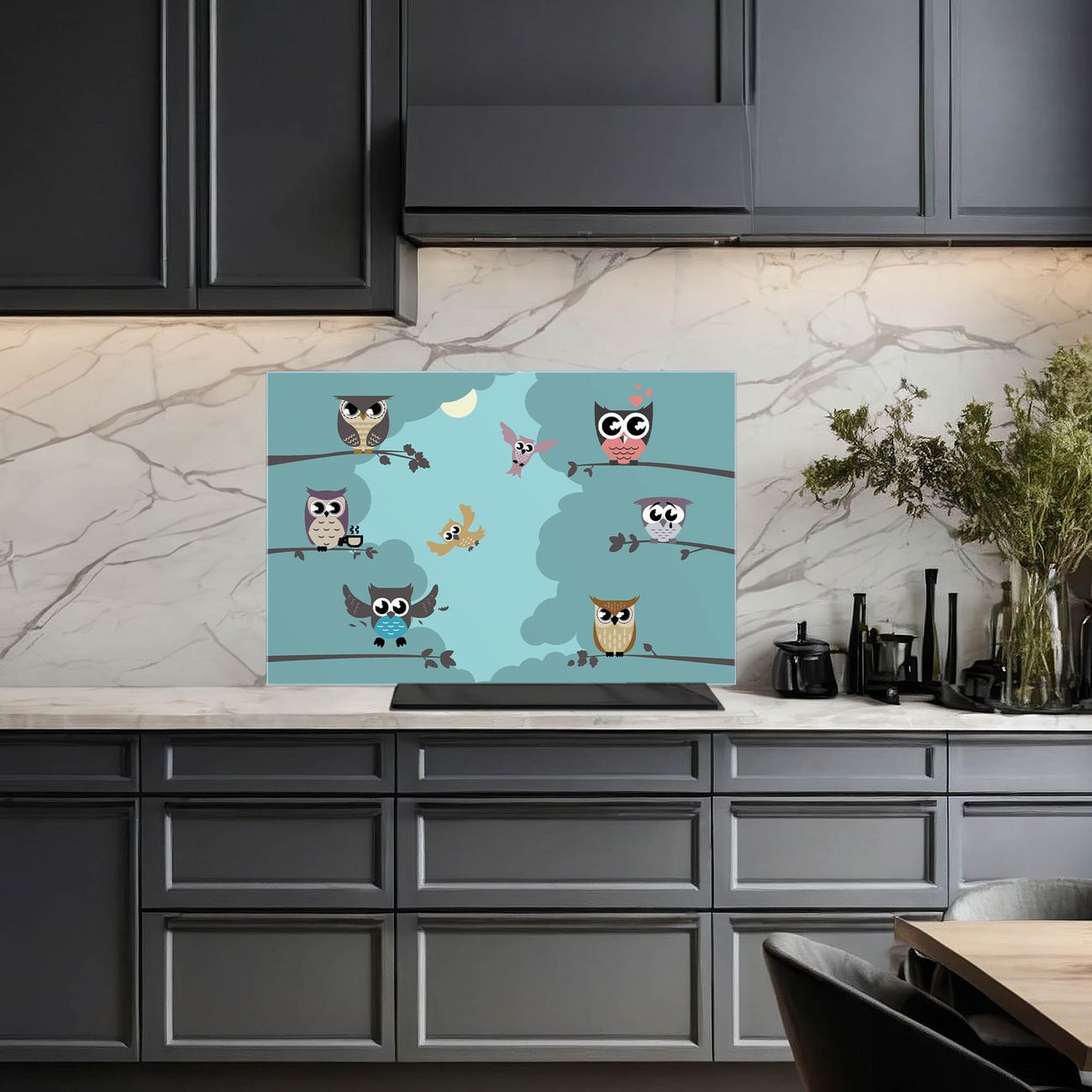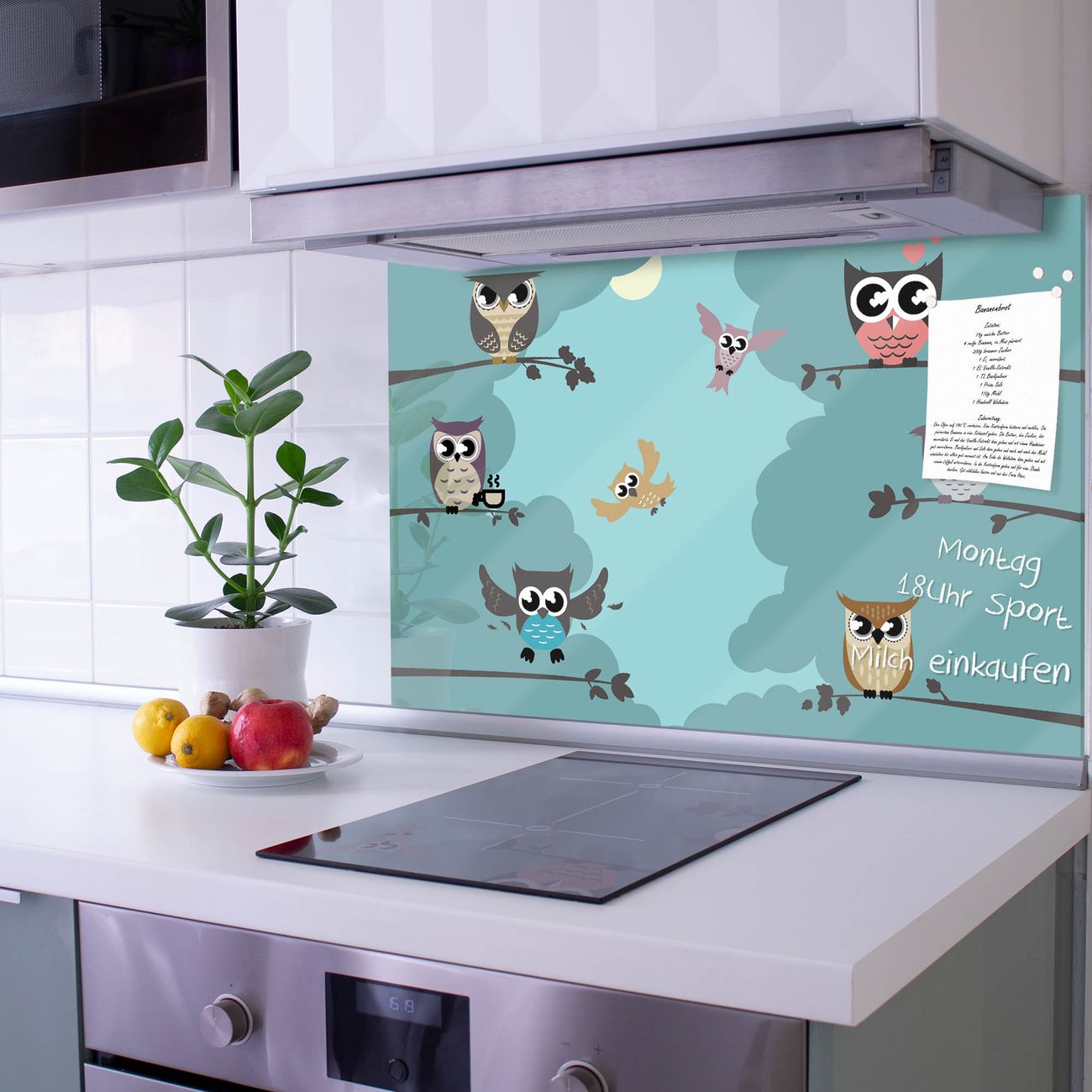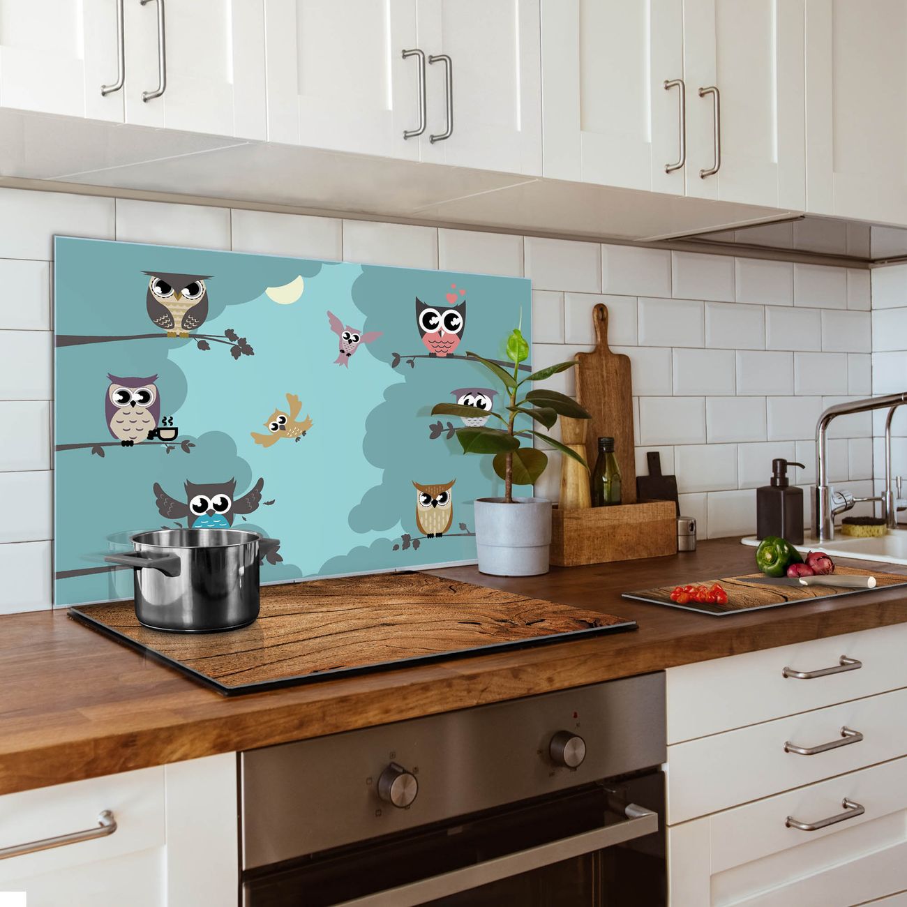 Küchenrückwand Glas Motiv Acht Eulen