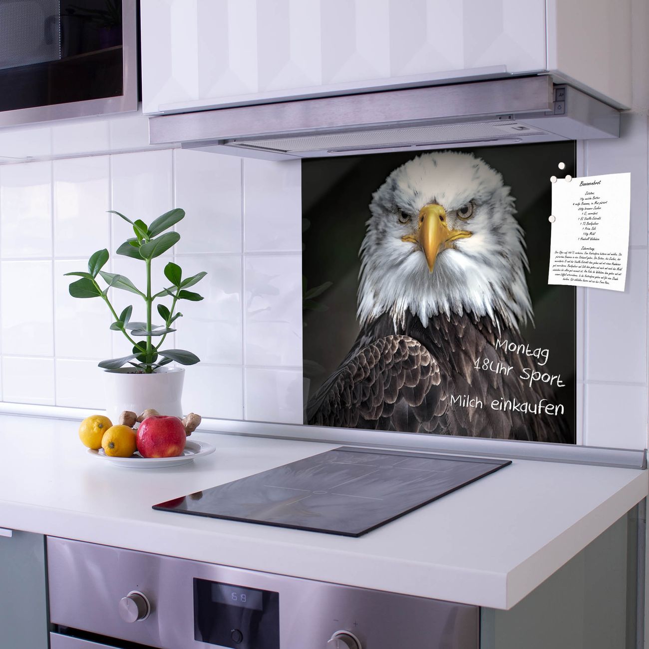 Die banjado Glas Küchenrückwand in verschiedenen Größen mit Motiv Adler schützt Ihre Küchenfliesen vor Fettspritzern oder Wasserflecken. Der Spritzschutz ist gleichzeitig magnetisch und hält Ihre Rezepte oder Einkaufslisten. 4 Neodym-Magnete und 1 Kreidestift liegen bereits bei. Leuchtende Motive und hochwertiges Material machen den Spritzschutz zum Designobjekt. Das dekorative Glasbild gibt Ihrer Küche ein individuelles Erscheinungsbild. Abgerundete Kanten und Sicherheitsglas sorgen für einen sicheren Einsatz.