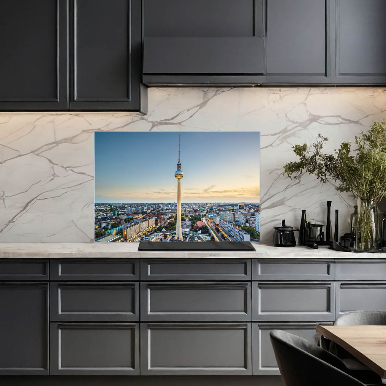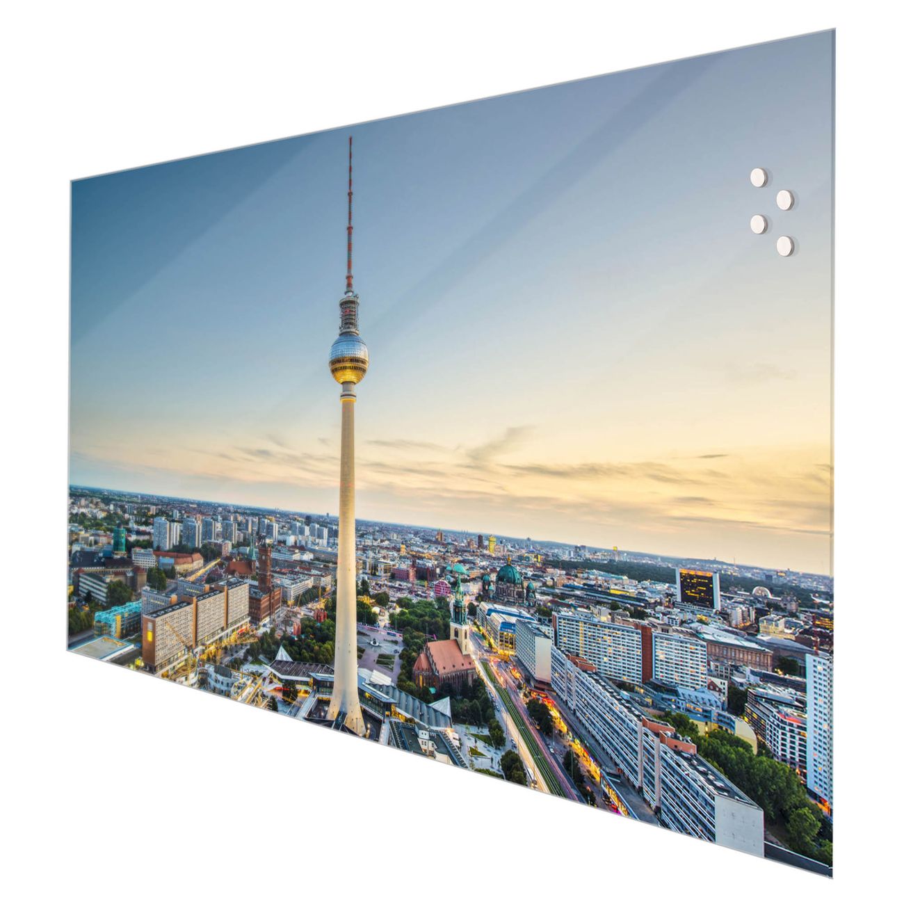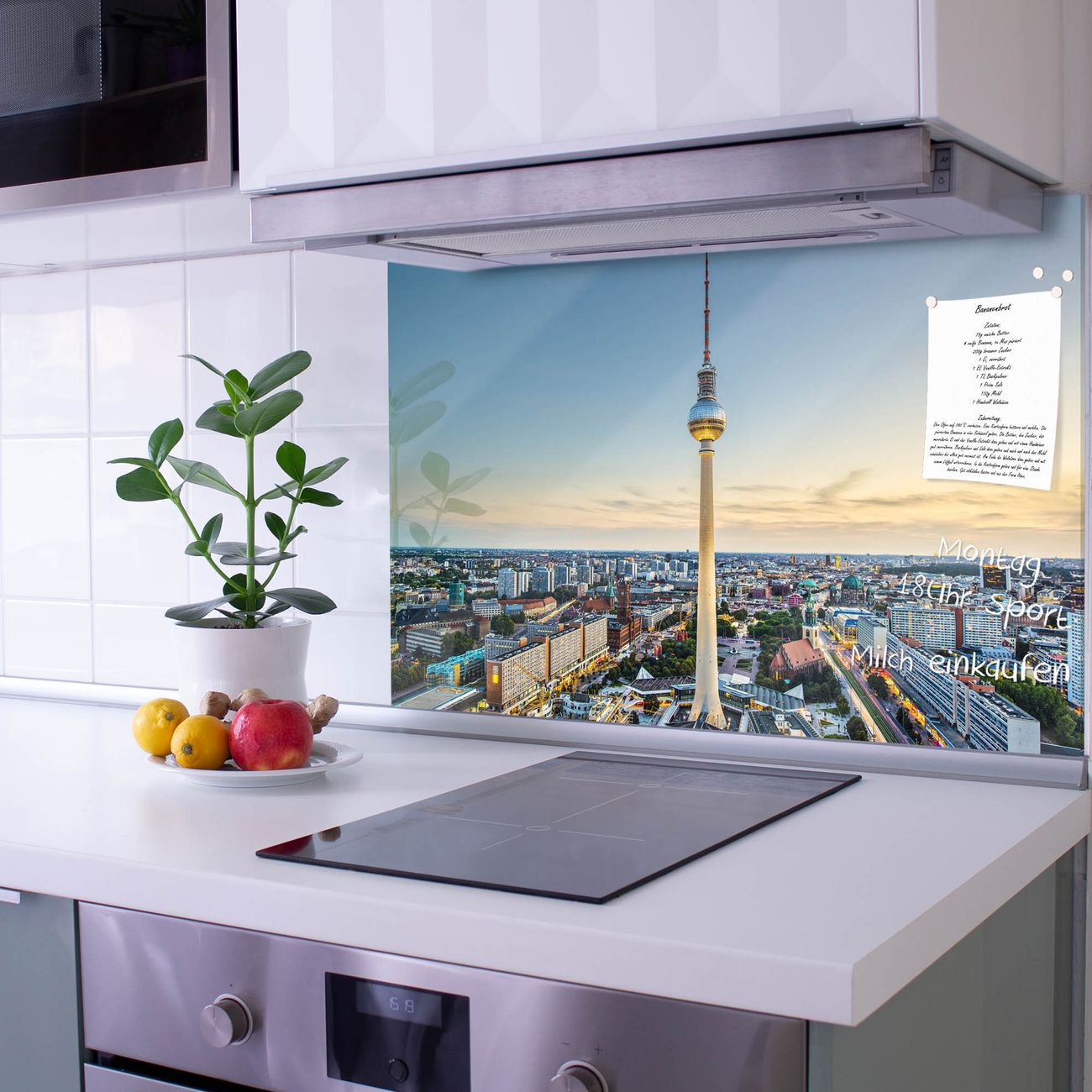Die banjado Glas Küchenrückwand in verschiedenen Größen mit Motiv Alexanderplatz schützt Ihre Küchenfliesen vor Fettspritzern oder Wasserflecken. Der Spritzschutz ist gleichzeitig magnetisch und hält Ihre Rezepte oder Einkaufslisten. 4 Neodym-Magnete und 1 Kreidestift liegen bereits bei. Leuchtende Motive und hochwertiges Material machen den Spritzschutz zum Designobjekt. Das dekorative Glasbild gibt Ihrer Küche ein individuelles Erscheinungsbild. Abgerundete Kanten und Sicherheitsglas sorgen für einen sicheren Einsatz.