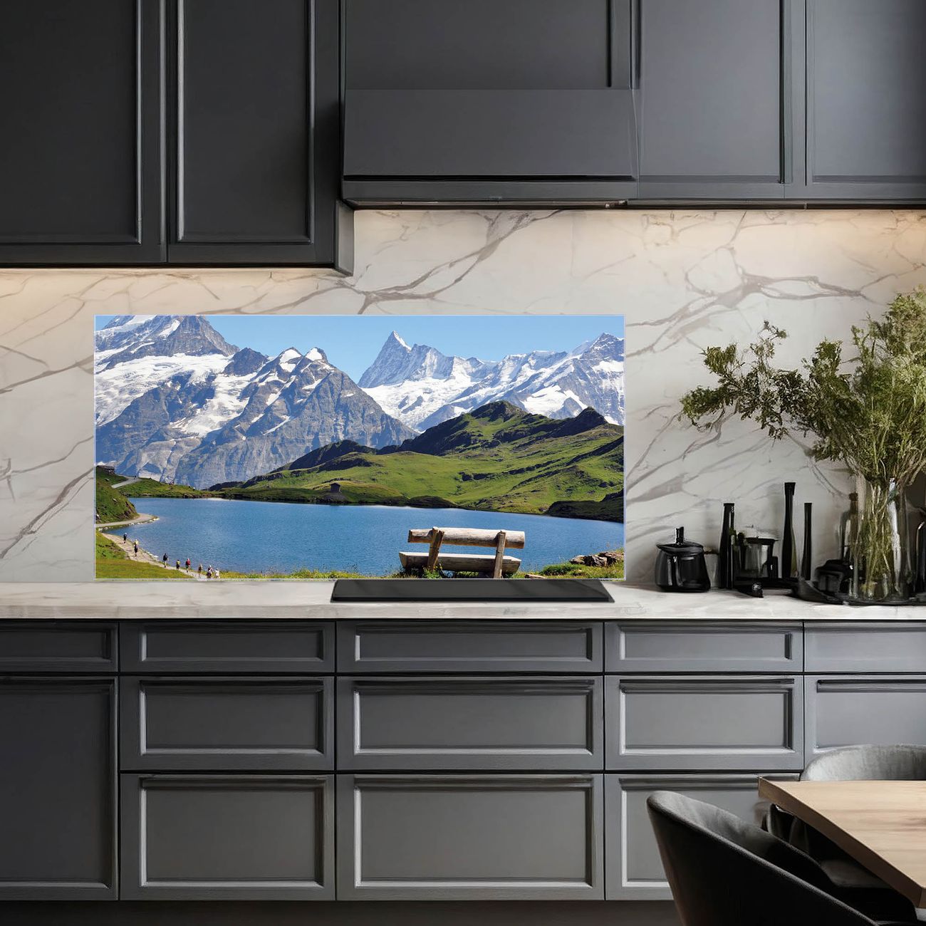 Die banjado Glas Küchenrückwand in verschiedenen Größen mit Motiv Alpen schützt Ihre Küchenfliesen vor Fettspritzern oder Wasserflecken. Der Spritzschutz ist gleichzeitig magnetisch und hält Ihre Rezepte oder Einkaufslisten. 4 Neodym-Magnete und 1 Kreidestift liegen bereits bei. Leuchtende Motive und hochwertiges Material machen den Spritzschutz zum Designobjekt. Das dekorative Glasbild gibt Ihrer Küche ein individuelles Erscheinungsbild. Abgerundete Kanten und Sicherheitsglas sorgen für einen sicheren Einsatz.
