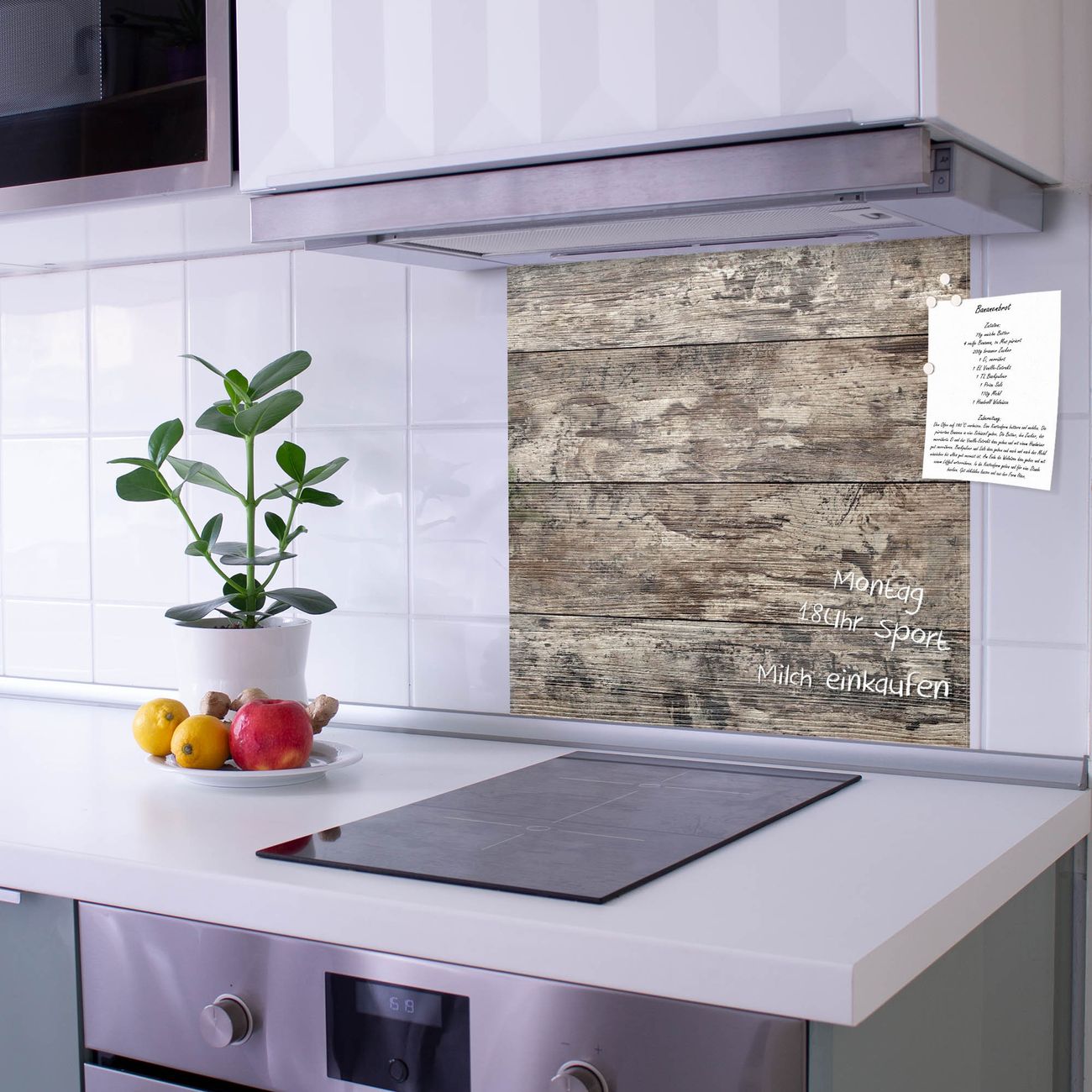 Die Küchenrückwand ist eine elegante Mehrzwecktafel: als Spritzschutz hinter Herd oder Waschbecken, hält Notizen wie ein Memoboard, ist beschreibbar mit Kreidestiften oder Whiteboard-Markern, sieht umwerfend als Glasbild aus. Sie besteht aus gehärtetem Glas, die Rückwand aus einem magnetischen Stahlblech. Durch die superflache Bauweise haben Sie die Wahl aus einer Vielzahl von Befestigungsmöglichkeiten. Sie können die Küchenrückwand mit einem Montagekleber superflach an die Wand kleben oder Sie wählen eines unserer passenden Befestigungssets, welches eine optimale Montage garantiert. Die Küchenrückwand besteht aus zertifiziertem Sicherheitsglas. Durch die mitgelieferten 4 Neodym-Magnete ist Ihre Glas Magnettafel sofort einsatzbereit.