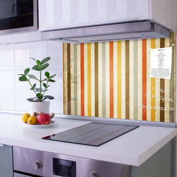 Die banjado Glas Küchenrückwand in verschiedenen Größen mit Motiv Alte Streifen schützt Ihre Küchenfliesen vor Fettspritzern oder Wasserflecken. Der Spritzschutz ist gleichzeitig magnetisch und hält Ihre Rezepte oder Einkaufslisten. 4 Neodym-Magnete und 1 Kreidestift liegen bereits bei. Leuchtende Motive und hochwertiges Material machen den Spritzschutz zum Designobjekt. Das dekorative Glasbild gibt Ihrer Küche ein individuelles Erscheinungsbild. Abgerundete Kanten und Sicherheitsglas sorgen für einen sicheren Einsatz.