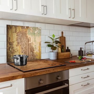 Die banjado Glas Küchenrückwand in verschiedenen Größen mit Motiv Alte Tapeten schützt Ihre Küchenfliesen vor Fettspritzern oder Wasserflecken. Der Spritzschutz ist gleichzeitig magnetisch und hält Ihre Rezepte oder Einkaufslisten. 4 Neodym-Magnete und 1 Kreidestift liegen bereits bei. Leuchtende Motive und hochwertiges Material machen den Spritzschutz zum Designobjekt. Das dekorative Glasbild gibt Ihrer Küche ein individuelles Erscheinungsbild. Abgerundete Kanten und Sicherheitsglas sorgen für einen sicheren Einsatz.