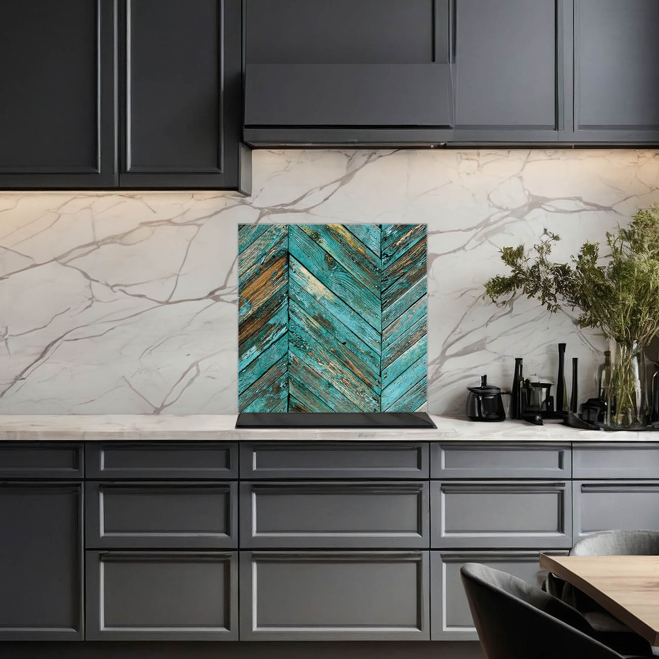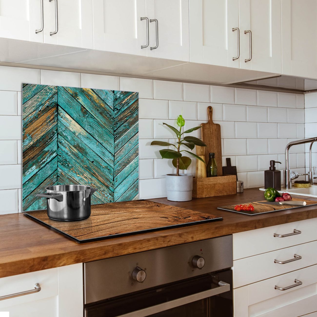 Die banjado Glas Küchenrückwand in verschiedenen Größen mit Motiv Altes Holz Blau schützt Ihre Küchenfliesen vor Fettspritzern oder Wasserflecken. Der Spritzschutz ist gleichzeitig magnetisch und hält Ihre Rezepte oder Einkaufslisten. 4 Neodym-Magnete und 1 Kreidestift liegen bereits bei. Leuchtende Motive und hochwertiges Material machen den Spritzschutz zum Designobjekt. Das dekorative Glasbild gibt Ihrer Küche ein individuelles Erscheinungsbild. Abgerundete Kanten und Sicherheitsglas sorgen für einen sicheren Einsatz.