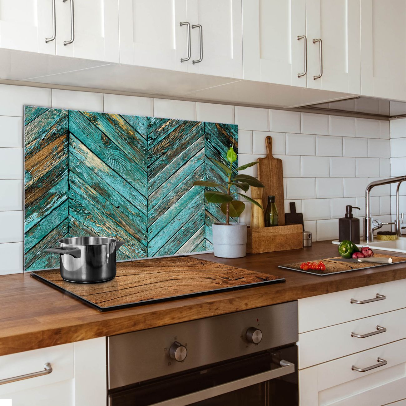 Die banjado Glas Küchenrückwand in verschiedenen Größen mit Motiv Altes Holz Blau schützt Ihre Küchenfliesen vor Fettspritzern oder Wasserflecken. Der Spritzschutz ist gleichzeitig magnetisch und hält Ihre Rezepte oder Einkaufslisten. 4 Neodym-Magnete und 1 Kreidestift liegen bereits bei. Leuchtende Motive und hochwertiges Material machen den Spritzschutz zum Designobjekt. Das dekorative Glasbild gibt Ihrer Küche ein individuelles Erscheinungsbild. Abgerundete Kanten und Sicherheitsglas sorgen für einen sicheren Einsatz.