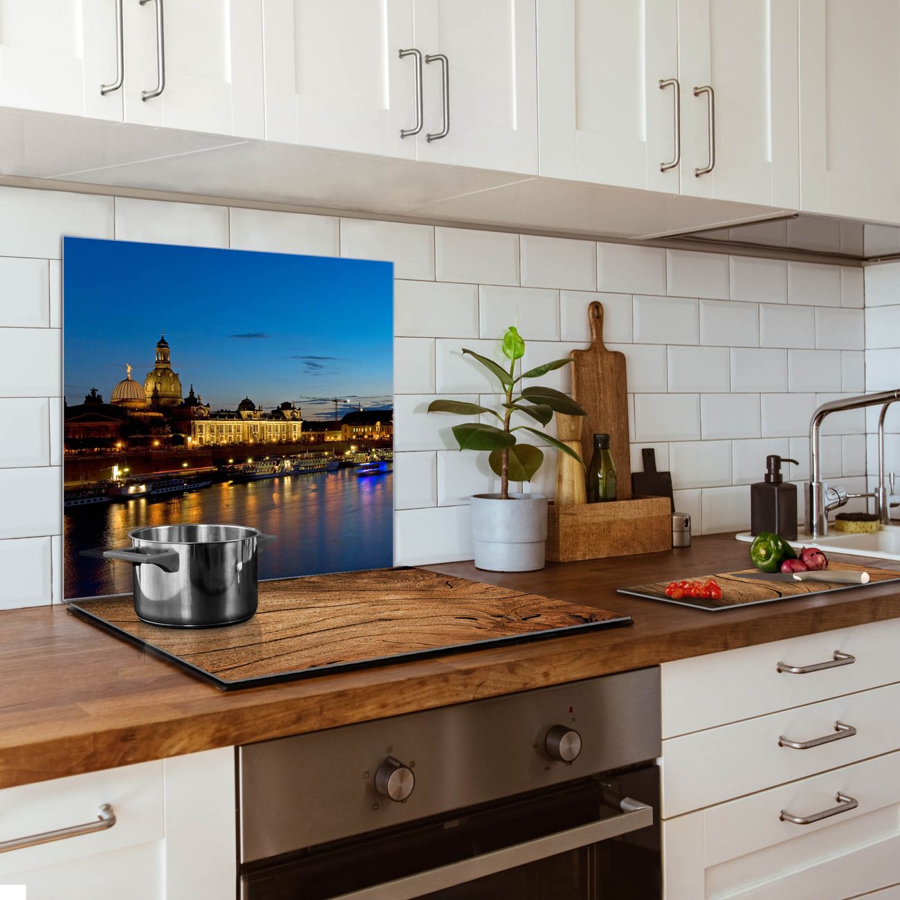Die banjado Glas Küchenrückwand in verschiedenen Größen mit Motiv Altstadt Dresden schützt Ihre Küchenfliesen vor Fettspritzern oder Wasserflecken. Der Spritzschutz ist gleichzeitig magnetisch und hält Ihre Rezepte oder Einkaufslisten. 4 Neodym-Magnete und 1 Kreidestift liegen bereits bei. Leuchtende Motive und hochwertiges Material machen den Spritzschutz zum Designobjekt. Das dekorative Glasbild gibt Ihrer Küche ein individuelles Erscheinungsbild. Abgerundete Kanten und Sicherheitsglas sorgen für einen sicheren Einsatz.