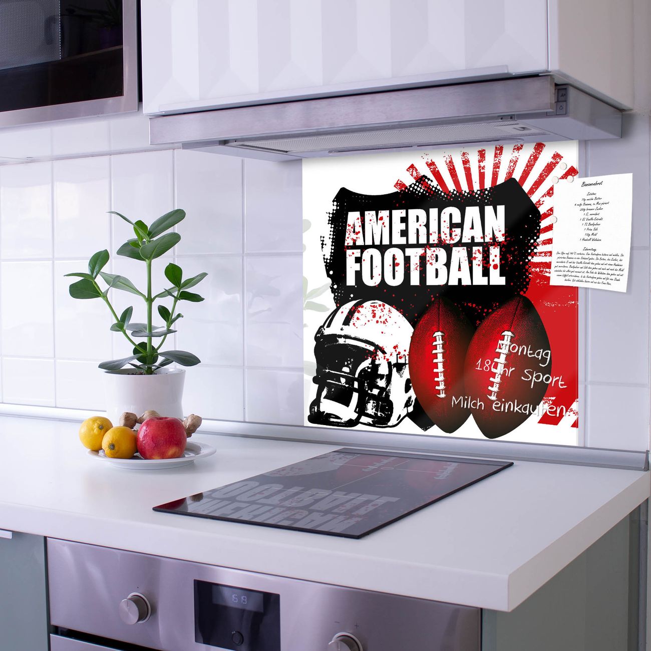 Die banjado Glas Küchenrückwand in verschiedenen Größen mit Motiv American Football schützt Ihre Küchenfliesen vor Fettspritzern oder Wasserflecken. Der Spritzschutz ist gleichzeitig magnetisch und hält Ihre Rezepte oder Einkaufslisten. 4 Neodym-Magnete und 1 Kreidestift liegen bereits bei. Leuchtende Motive und hochwertiges Material machen den Spritzschutz zum Designobjekt. Das dekorative Glasbild gibt Ihrer Küche ein individuelles Erscheinungsbild. Abgerundete Kanten und Sicherheitsglas sorgen für einen sicheren Einsatz.