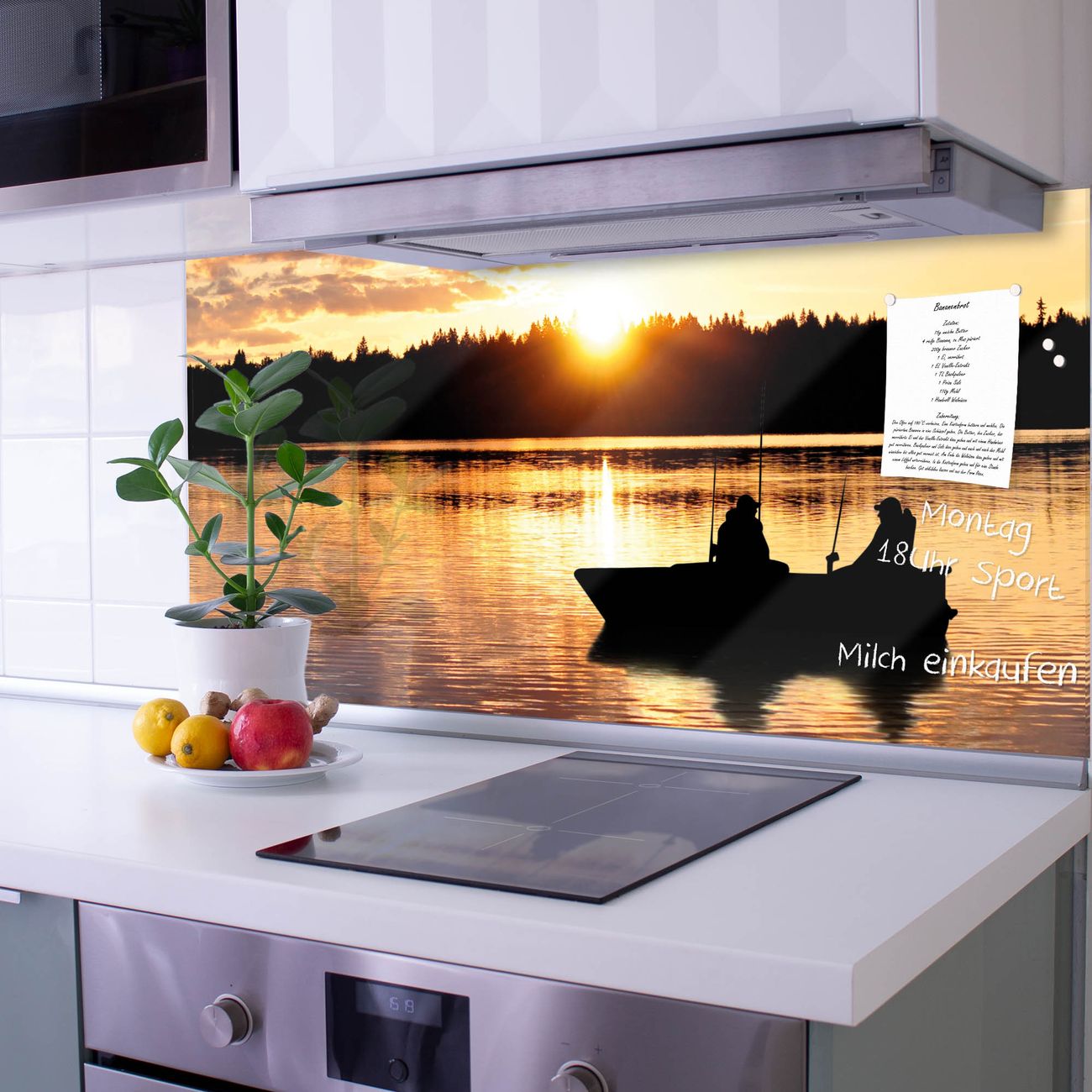 Die banjado Glas Küchenrückwand in verschiedenen Größen mit Motiv Angler schützt Ihre Küchenfliesen vor Fettspritzern oder Wasserflecken. Der Spritzschutz ist gleichzeitig magnetisch und hält Ihre Rezepte oder Einkaufslisten. 4 Neodym-Magnete und 1 Kreidestift liegen bereits bei. Leuchtende Motive und hochwertiges Material machen den Spritzschutz zum Designobjekt. Das dekorative Glasbild gibt Ihrer Küche ein individuelles Erscheinungsbild. Abgerundete Kanten und Sicherheitsglas sorgen für einen sicheren Einsatz.