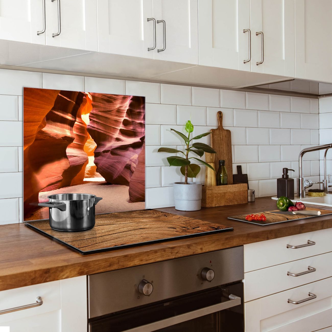 Die banjado Glas Küchenrückwand in verschiedenen Größen mit Motiv Antelope Canyon schützt Ihre Küchenfliesen vor Fettspritzern oder Wasserflecken. Der Spritzschutz ist gleichzeitig magnetisch und hält Ihre Rezepte oder Einkaufslisten. 4 Neodym-Magnete und 1 Kreidestift liegen bereits bei. Leuchtende Motive und hochwertiges Material machen den Spritzschutz zum Designobjekt. Das dekorative Glasbild gibt Ihrer Küche ein individuelles Erscheinungsbild. Abgerundete Kanten und Sicherheitsglas sorgen für einen sicheren Einsatz.