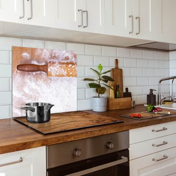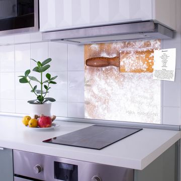 Die banjado Glas Küchenrückwand in verschiedenen Größen mit Motiv Backen schützt Ihre Küchenfliesen vor Fettspritzern oder Wasserflecken. Der Spritzschutz ist gleichzeitig magnetisch und hält Ihre Rezepte oder Einkaufslisten. 4 Neodym-Magnete und 1 Kreidestift liegen bereits bei. Leuchtende Motive und hochwertiges Material machen den Spritzschutz zum Designobjekt. Das dekorative Glasbild gibt Ihrer Küche ein individuelles Erscheinungsbild. Abgerundete Kanten und Sicherheitsglas sorgen für einen sicheren Einsatz.