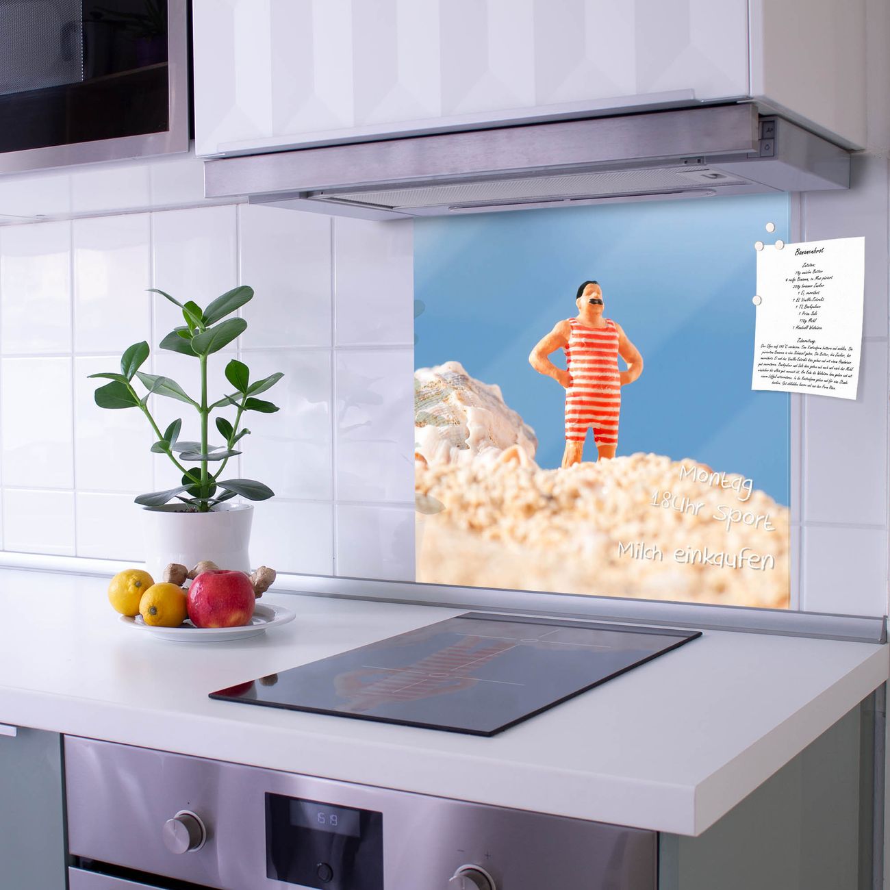 Die banjado Glas Küchenrückwand in verschiedenen Größen mit Motiv Bademeister schützt Ihre Küchenfliesen vor Fettspritzern oder Wasserflecken. Der Spritzschutz ist gleichzeitig magnetisch und hält Ihre Rezepte oder Einkaufslisten. 4 Neodym-Magnete und 1 Kreidestift liegen bereits bei. Leuchtende Motive und hochwertiges Material machen den Spritzschutz zum Designobjekt. Das dekorative Glasbild gibt Ihrer Küche ein individuelles Erscheinungsbild. Abgerundete Kanten und Sicherheitsglas sorgen für einen sicheren Einsatz.
