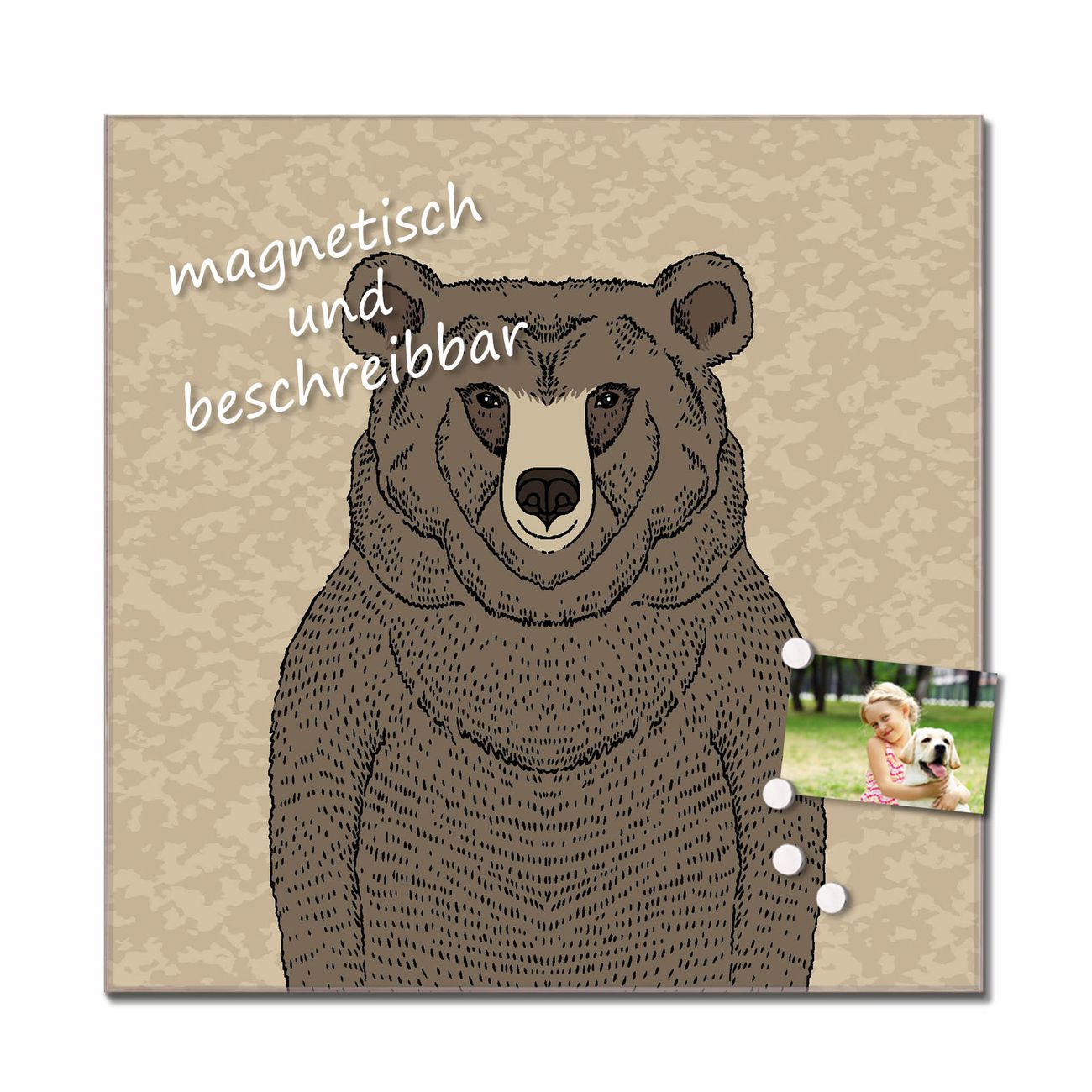 Die banjado Glas Küchenrückwand in verschiedenen Größen mit Motiv Bär Ohne Brille schützt Ihre Küchenfliesen vor Fettspritzern oder Wasserflecken. Der Spritzschutz ist gleichzeitig magnetisch und hält Ihre Rezepte oder Einkaufslisten. 4 Neodym-Magnete und 1 Kreidestift liegen bereits bei. Leuchtende Motive und hochwertiges Material machen den Spritzschutz zum Designobjekt. Das dekorative Glasbild gibt Ihrer Küche ein individuelles Erscheinungsbild. Abgerundete Kanten und Sicherheitsglas sorgen für einen sicheren Einsatz.