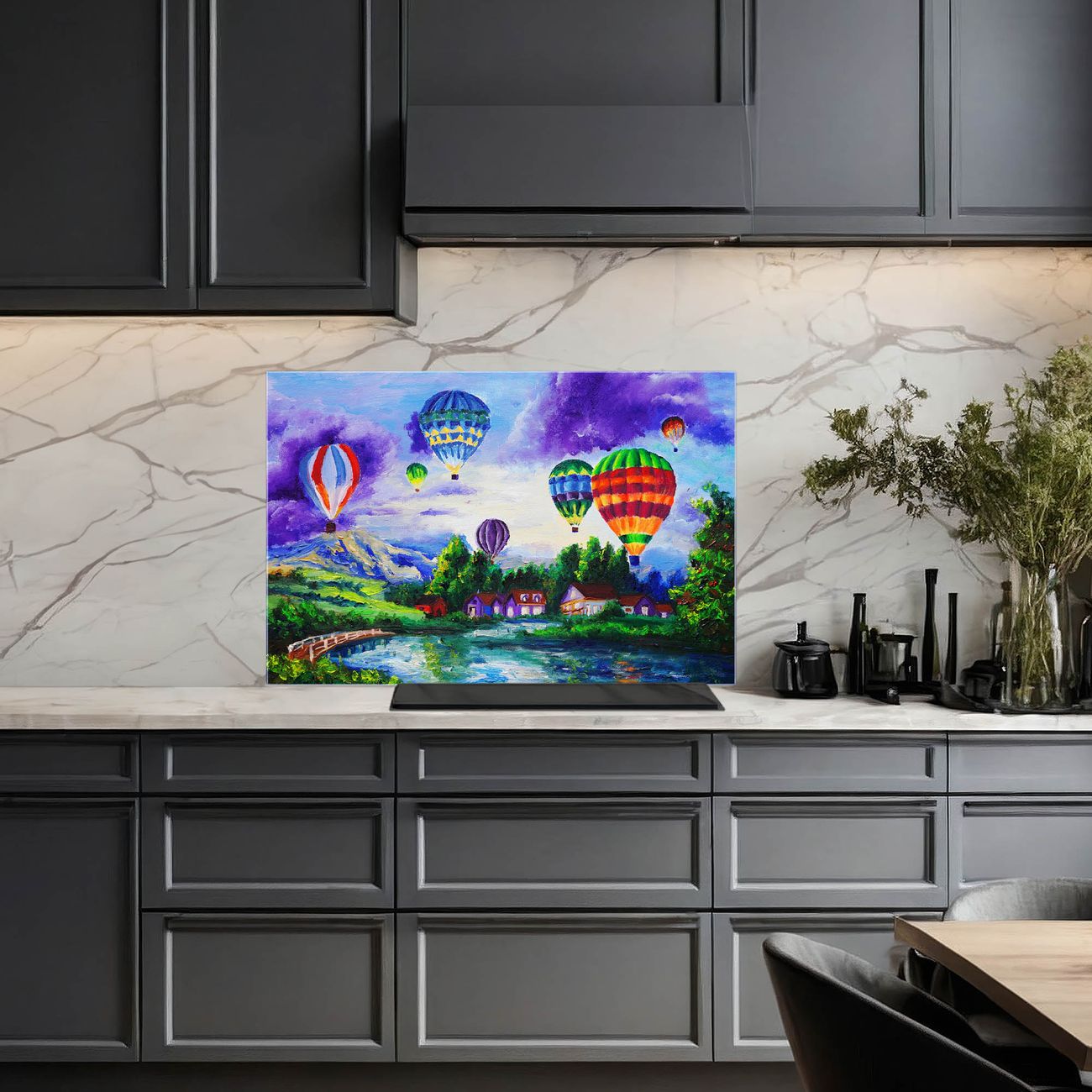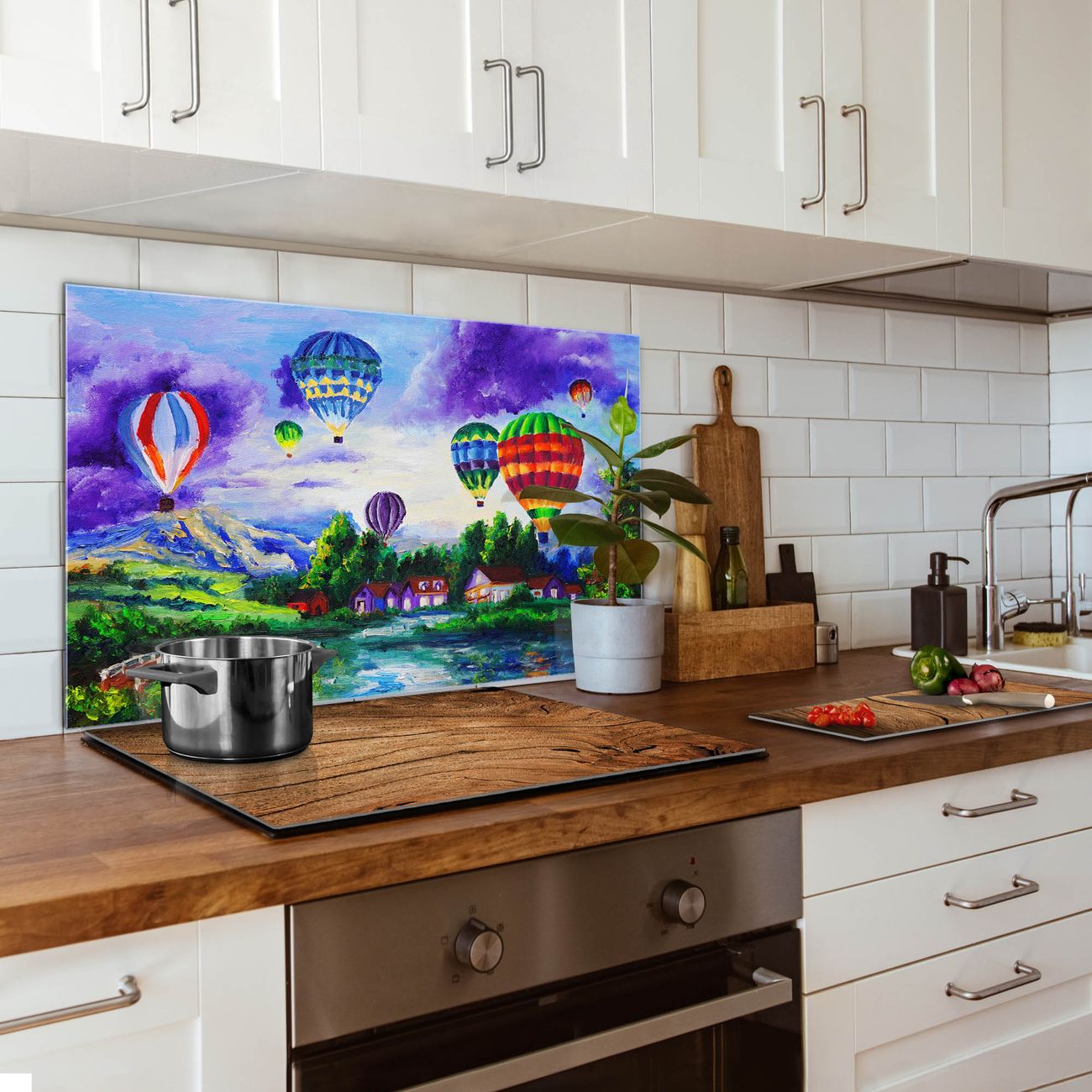 Küchenrückwand Glas Motiv Ballons In Lila Wolken
