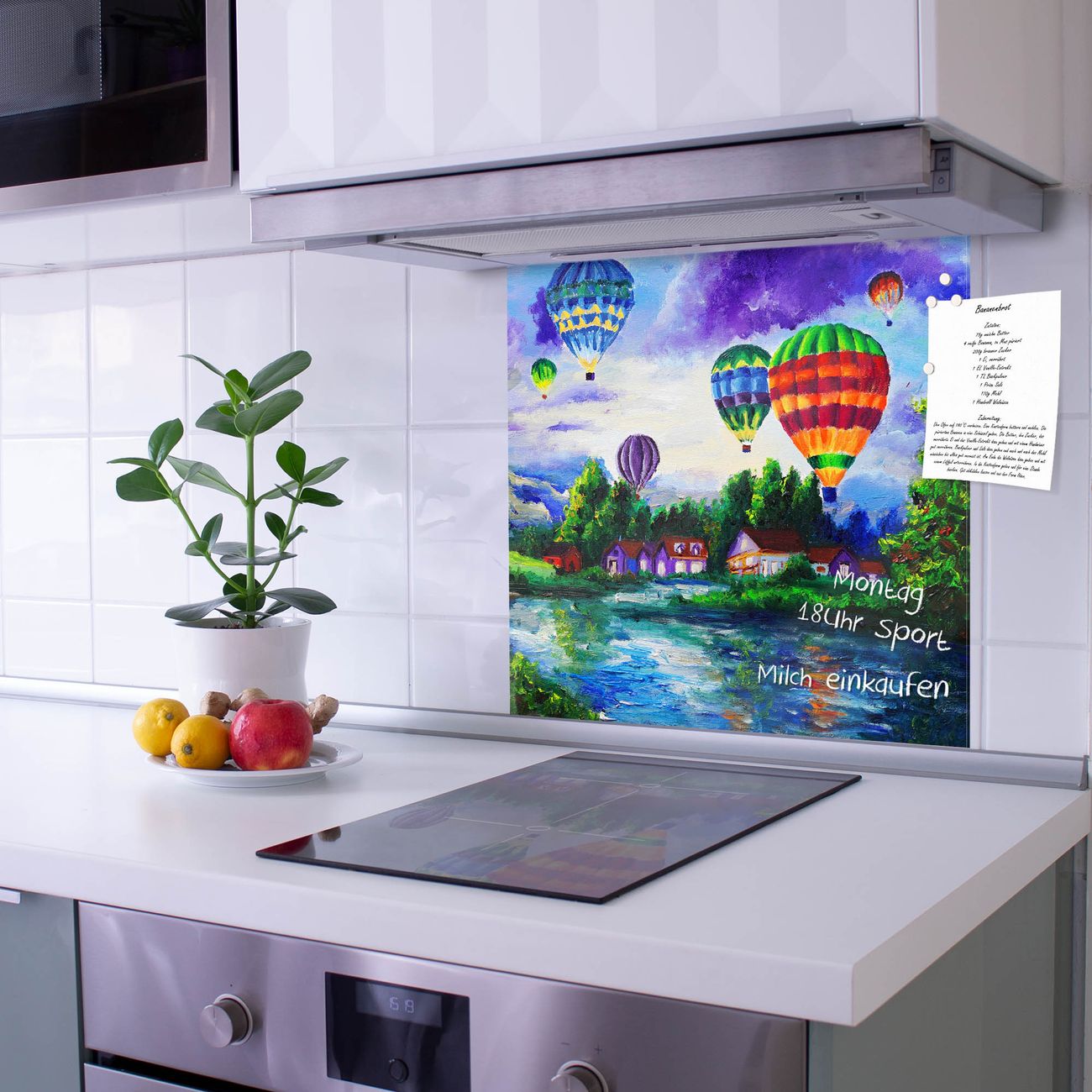 Die Küchenrückwand ist eine elegante Mehrzwecktafel: als Spritzschutz hinter Herd oder Waschbecken, hält Notizen wie ein Memoboard, ist beschreibbar mit Kreidestiften oder Whiteboard-Markern, sieht umwerfend als Glasbild aus. Sie besteht aus gehärtetem Glas, die Rückwand aus einem magnetischen Stahlblech. Durch die superflache Bauweise haben Sie die Wahl aus einer Vielzahl von Befestigungsmöglichkeiten. Sie können die Küchenrückwand mit einem Montagekleber superflach an die Wand kleben oder Sie wählen eines unserer passenden Befestigungssets, welches eine optimale Montage garantiert. Die Küchenrückwand besteht aus zertifiziertem Sicherheitsglas. Durch die mitgelieferten 4 Neodym-Magnete ist Ihre Glas Magnettafel sofort einsatzbereit.
