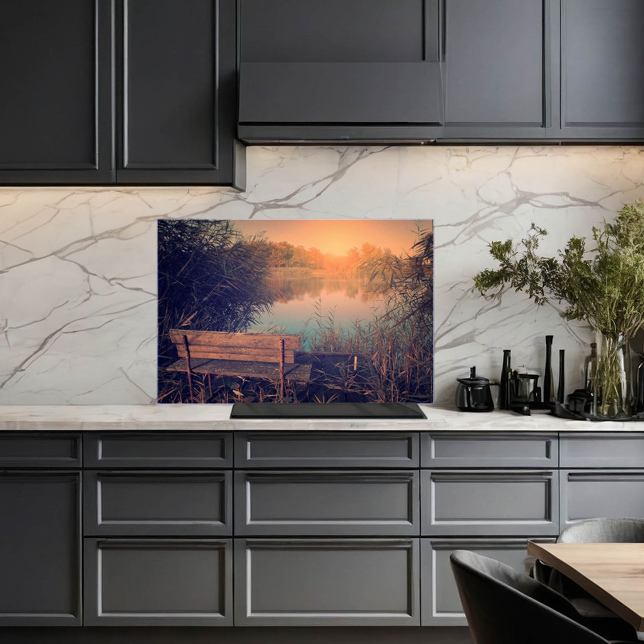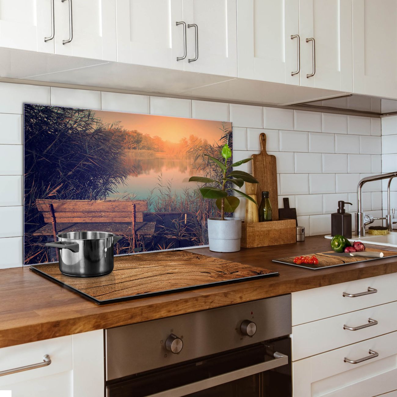 Küchenrückwand Glas Motiv Bank Am See