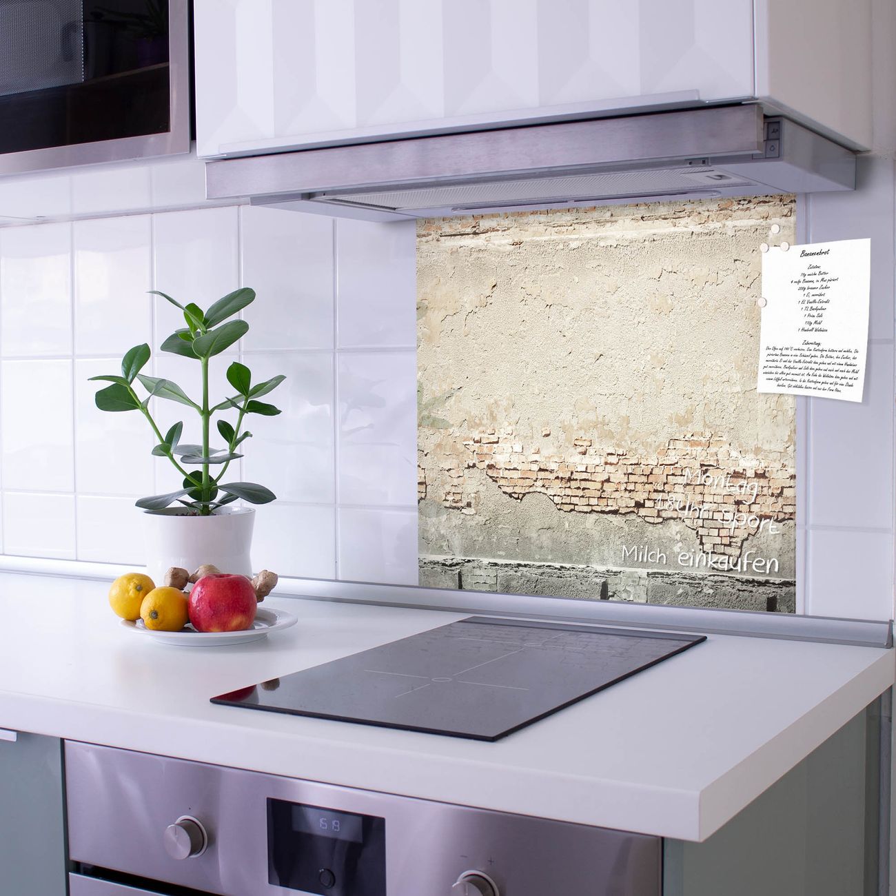 Die Küchenrückwand ist eine elegante Mehrzwecktafel: als Spritzschutz hinter Herd oder Waschbecken, hält Notizen wie ein Memoboard, ist beschreibbar mit Kreidestiften oder Whiteboard-Markern, sieht umwerfend als Glasbild aus. Sie besteht aus gehärtetem Glas, die Rückwand aus einem magnetischen Stahlblech. Durch die superflache Bauweise haben Sie die Wahl aus einer Vielzahl von Befestigungsmöglichkeiten. Sie können die Küchenrückwand mit einem Montagekleber superflach an die Wand kleben oder Sie wählen eines unserer passenden Befestigungssets, welches eine optimale Montage garantiert. Die Küchenrückwand besteht aus zertifiziertem Sicherheitsglas. Durch die mitgelieferten 4 Neodym-Magnete ist Ihre Glas Magnettafel sofort einsatzbereit.