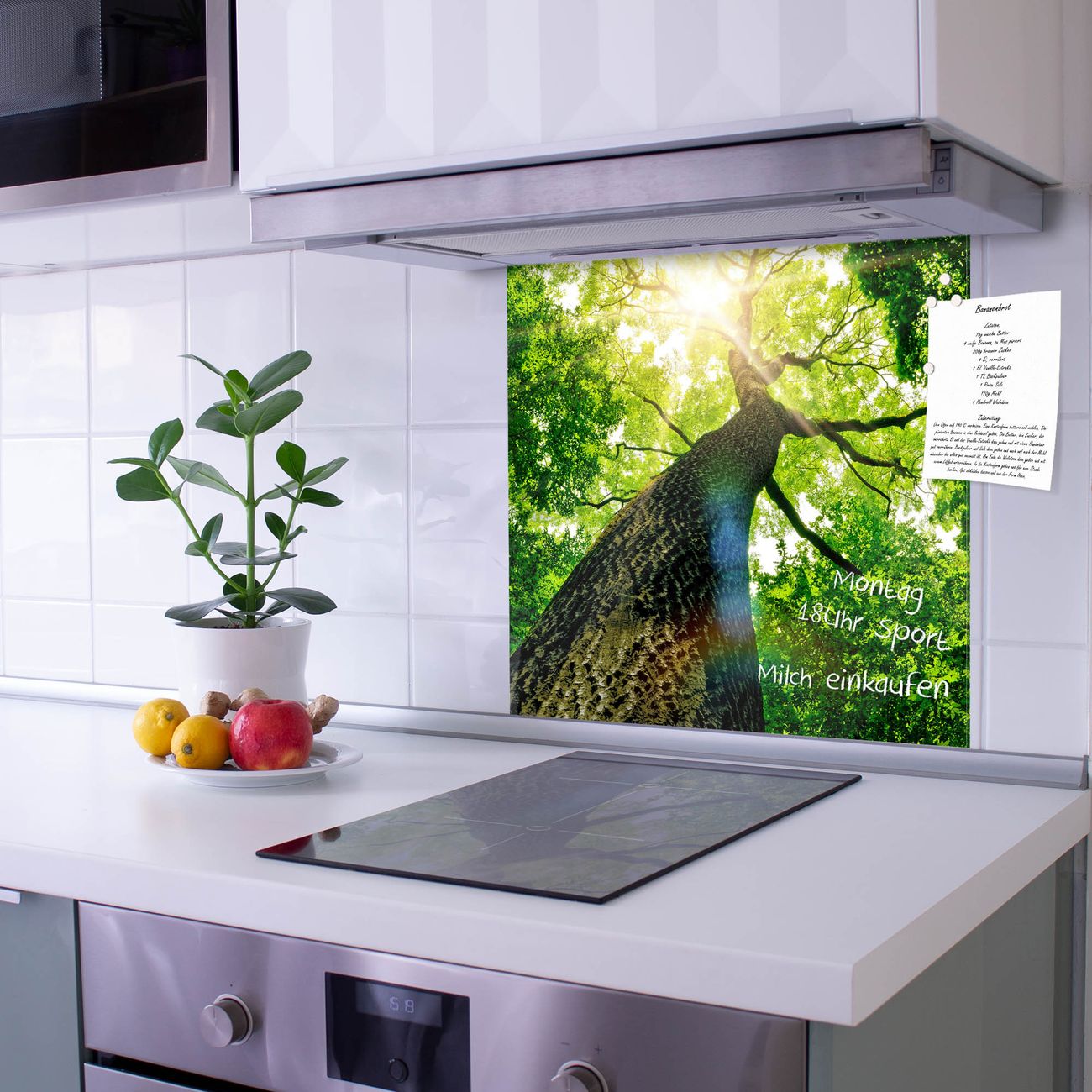 Die banjado Glas Küchenrückwand in verschiedenen Größen mit Motiv Baumkrone schützt Ihre Küchenfliesen vor Fettspritzern oder Wasserflecken. Der Spritzschutz ist gleichzeitig magnetisch und hält Ihre Rezepte oder Einkaufslisten. 4 Neodym-Magnete und 1 Kreidestift liegen bereits bei. Leuchtende Motive und hochwertiges Material machen den Spritzschutz zum Designobjekt. Das dekorative Glasbild gibt Ihrer Küche ein individuelles Erscheinungsbild. Abgerundete Kanten und Sicherheitsglas sorgen für einen sicheren Einsatz.