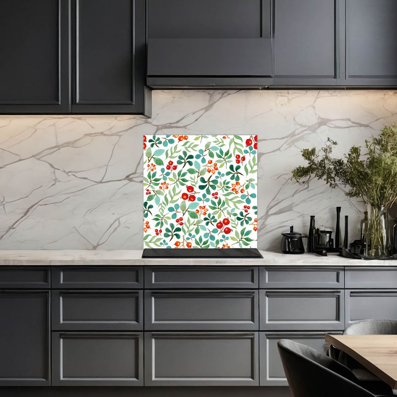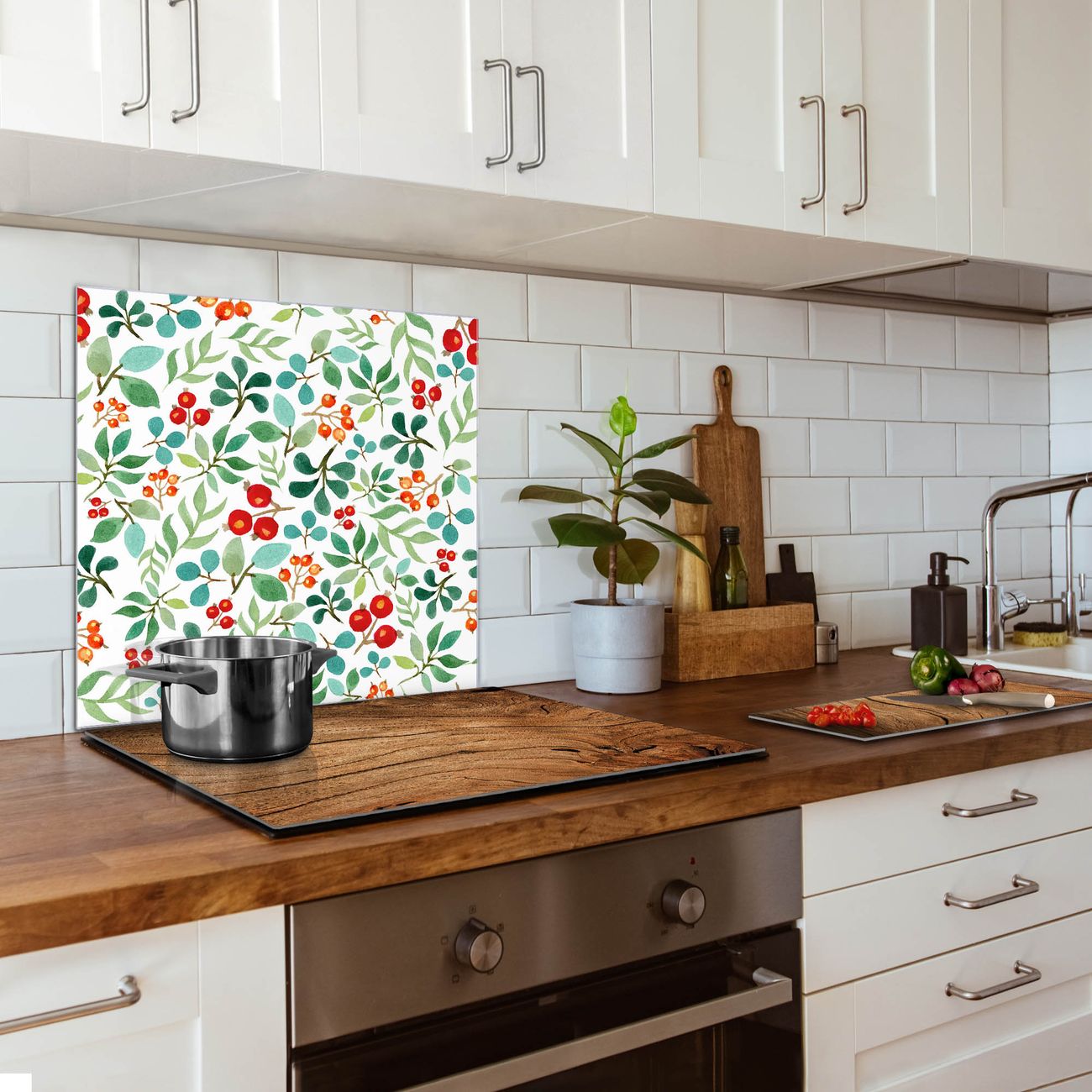 Küchenrückwand Glas Motiv Beeren und Blätter