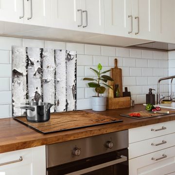 Die banjado Glas Küchenrückwand in verschiedenen Größen mit Motiv Birkenrinde schützt Ihre Küchenfliesen vor Fettspritzern oder Wasserflecken. Der Spritzschutz ist gleichzeitig magnetisch und hält Ihre Rezepte oder Einkaufslisten. 4 Neodym-Magnete und 1 Kreidestift liegen bereits bei. Leuchtende Motive und hochwertiges Material machen den Spritzschutz zum Designobjekt. Das dekorative Glasbild gibt Ihrer Küche ein individuelles Erscheinungsbild. Abgerundete Kanten und Sicherheitsglas sorgen für einen sicheren Einsatz.
