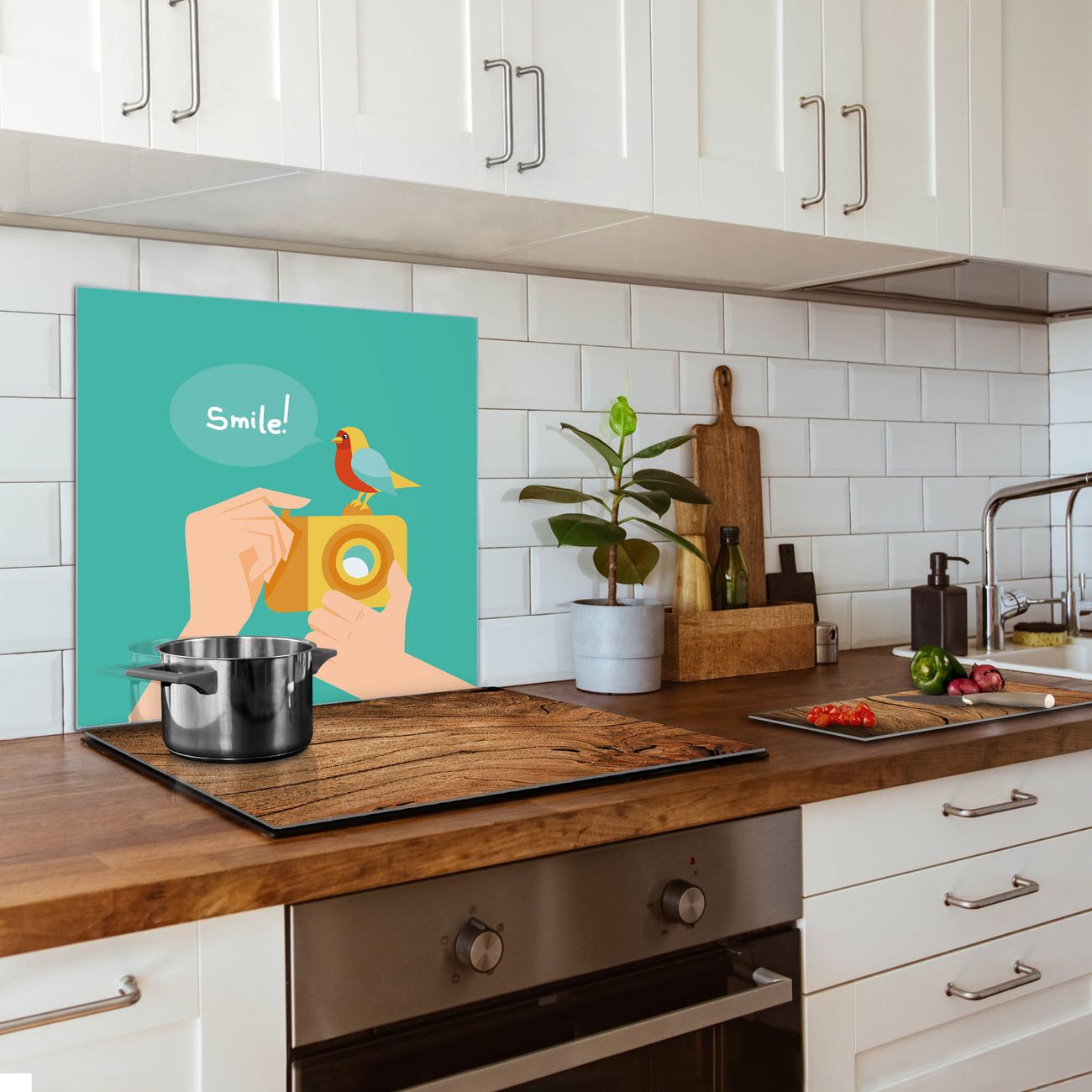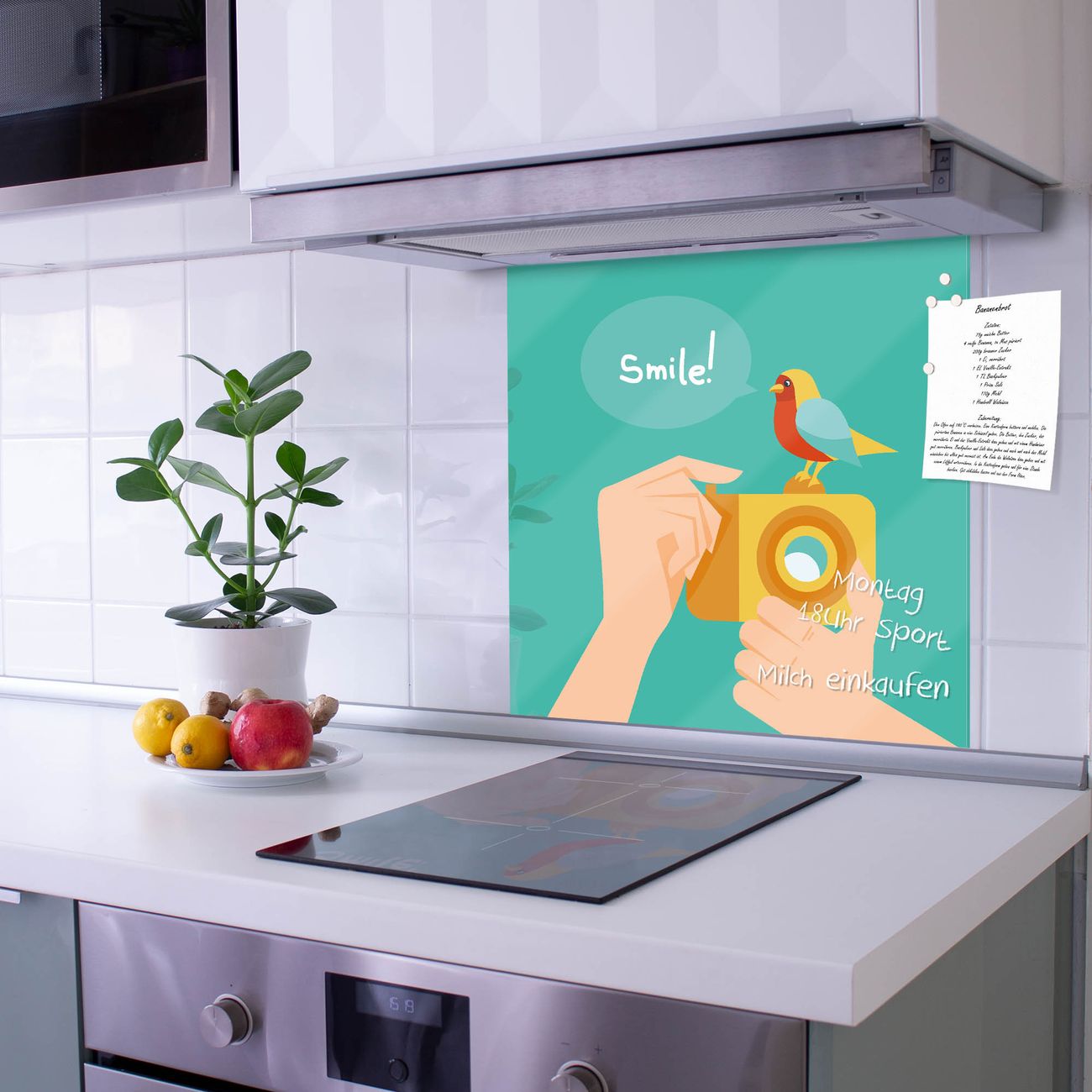 Küchenrückwand Glas Motiv Bitte Lächeln 2