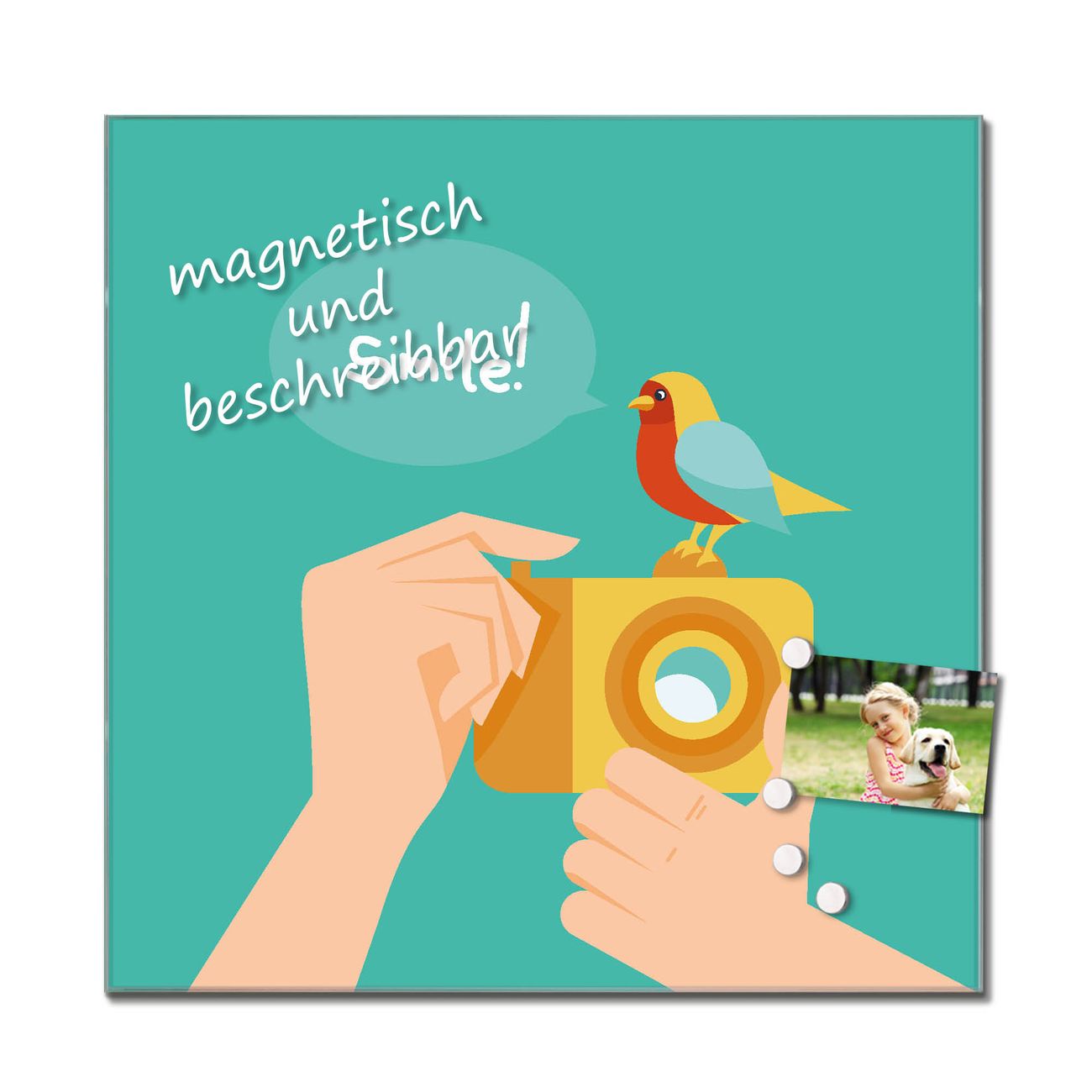 Bitte beachten Sie, dass ausschließlich spezielle Magnete an der Glastafel haften! Wir empfehlen banjado Neodym Magnete, diese sind durch uns auf Wirksamkeit geprüft.