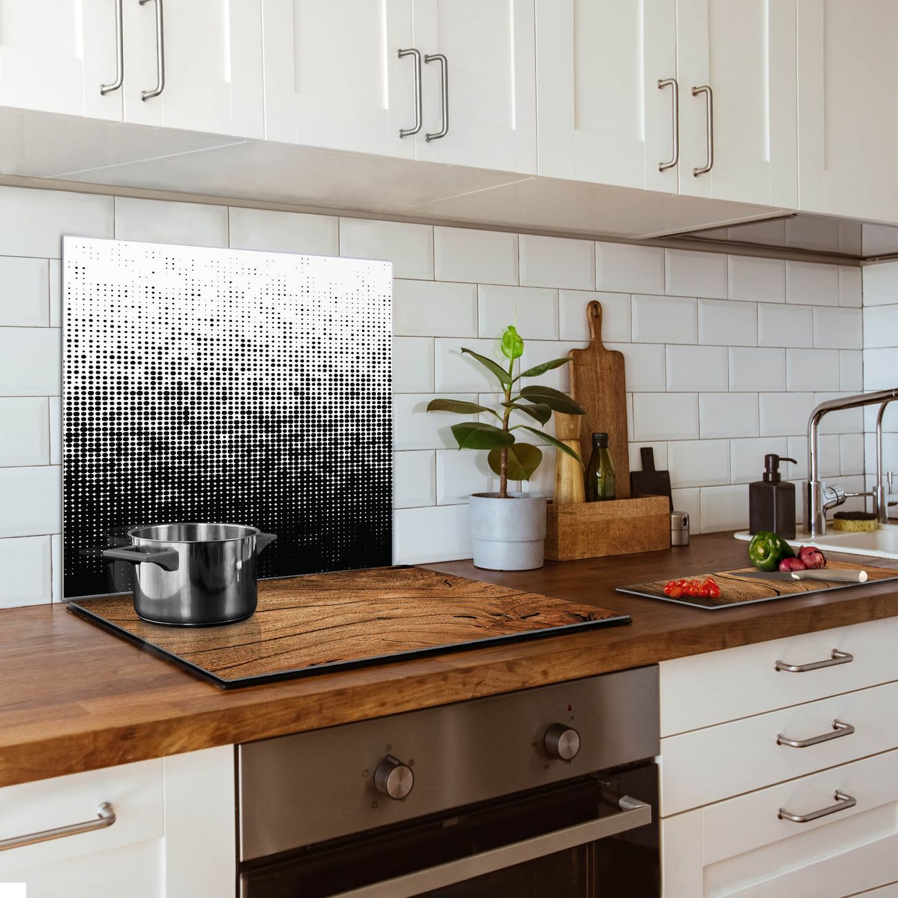 Die banjado Glas Küchenrückwand in verschiedenen Größen mit Motiv Black or White schützt Ihre Küchenfliesen vor Fettspritzern oder Wasserflecken. Der Spritzschutz ist gleichzeitig magnetisch und hält Ihre Rezepte oder Einkaufslisten. 4 Neodym-Magnete und 1 Kreidestift liegen bereits bei. Leuchtende Motive und hochwertiges Material machen den Spritzschutz zum Designobjekt. Das dekorative Glasbild gibt Ihrer Küche ein individuelles Erscheinungsbild. Abgerundete Kanten und Sicherheitsglas sorgen für einen sicheren Einsatz.