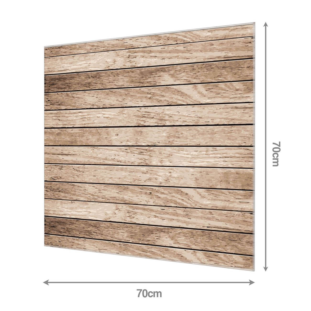 Material  4mm Sicherheitsglas mit Metallrückwand Eigenschaften  beschreibbar, magnetisch, kratzfest Maße  70x70x0,6cm, 7,4 kg schwer Motiv  Nummer 10770 Blasse Holzlatten Zubehör  inklusive 4 Neodym-Magnete
