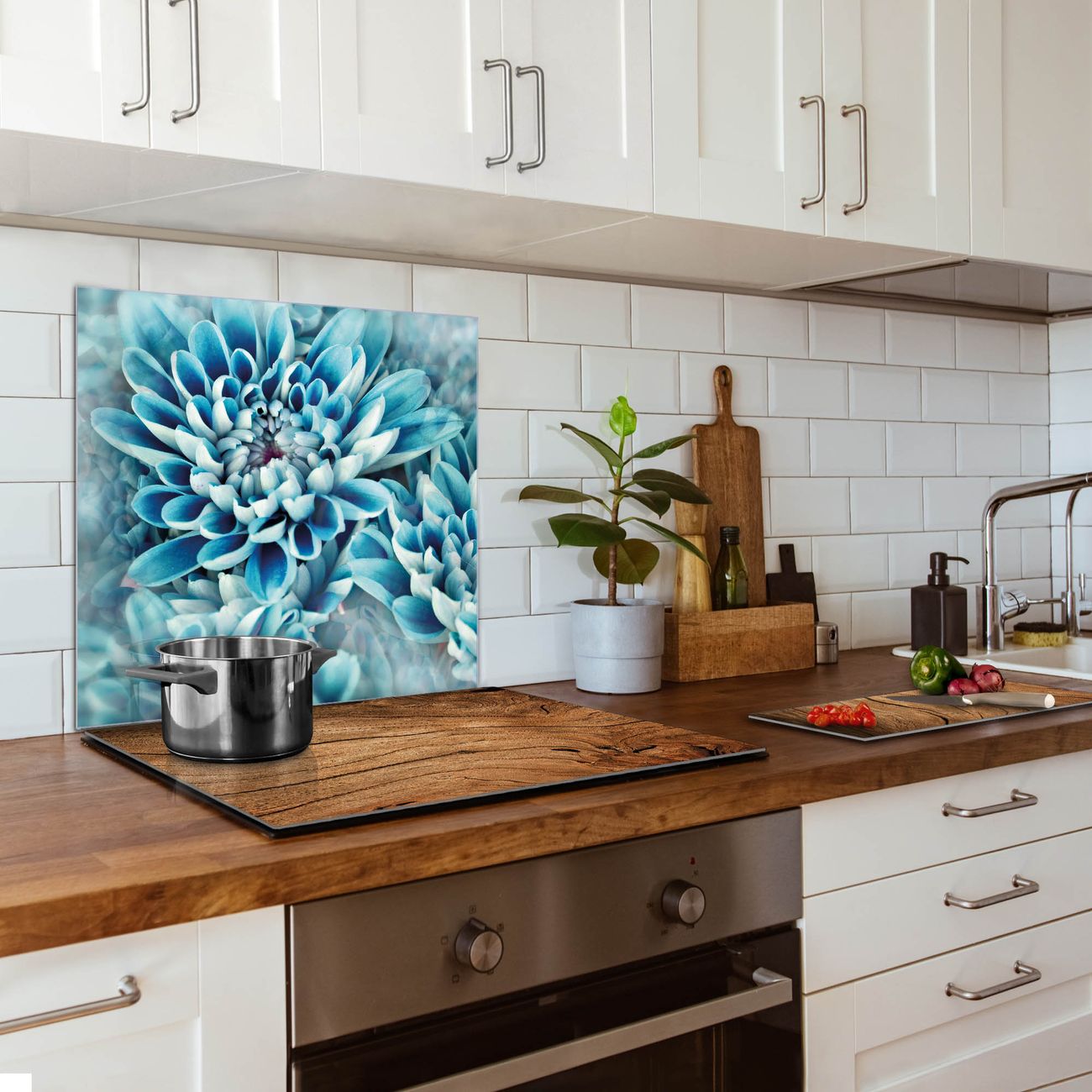 Die banjado Glas Küchenrückwand in verschiedenen Größen mit Motiv Blaue Blüten schützt Ihre Küchenfliesen vor Fettspritzern oder Wasserflecken. Der Spritzschutz ist gleichzeitig magnetisch und hält Ihre Rezepte oder Einkaufslisten. 4 Neodym-Magnete und 1 Kreidestift liegen bereits bei. Leuchtende Motive und hochwertiges Material machen den Spritzschutz zum Designobjekt. Das dekorative Glasbild gibt Ihrer Küche ein individuelles Erscheinungsbild. Abgerundete Kanten und Sicherheitsglas sorgen für einen sicheren Einsatz.