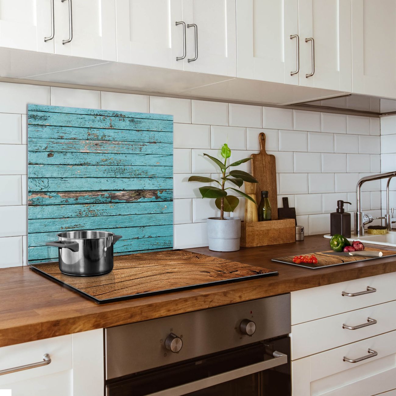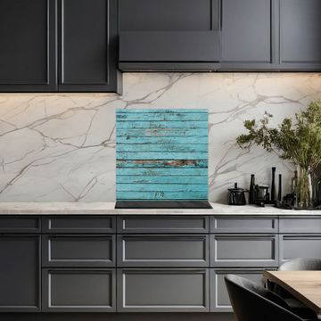 Küchenrückwand Glas Motiv Blaue Holzlatten