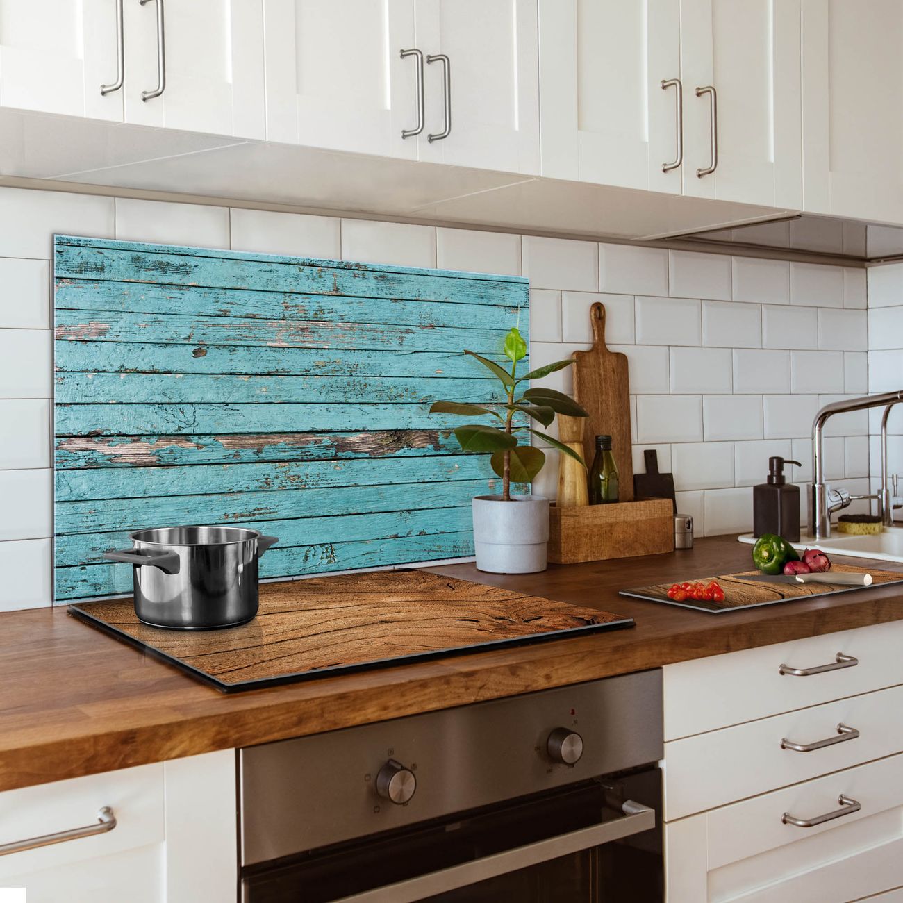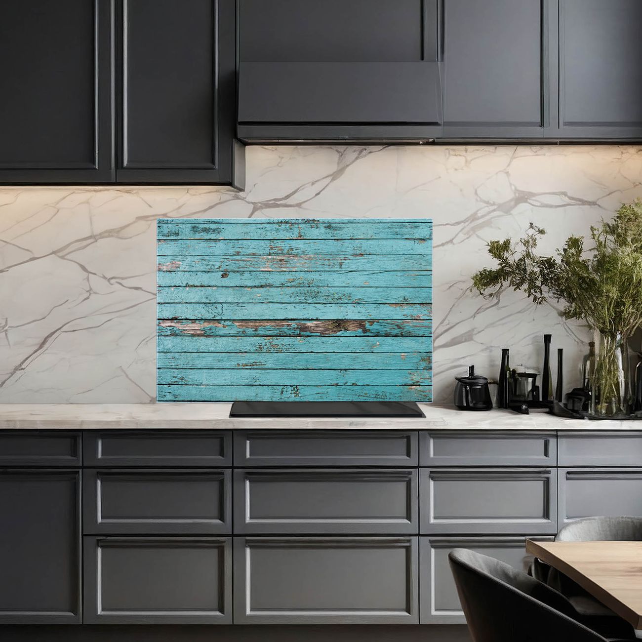 Küchenrückwand Glas Motiv Blaue Holzlatten