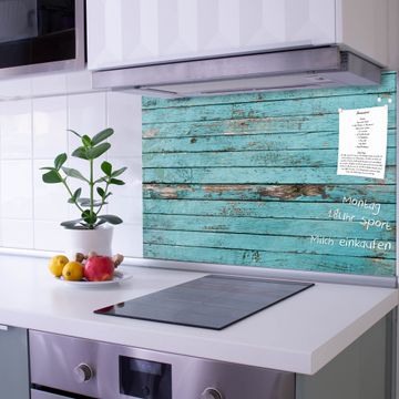Die banjado Glas Küchenrückwand in verschiedenen Größen mit Motiv Blaue Holzlatten schützt Ihre Küchenfliesen vor Fettspritzern oder Wasserflecken. Der Spritzschutz ist gleichzeitig magnetisch und hält Ihre Rezepte oder Einkaufslisten. 4 Neodym-Magnete und 1 Kreidestift liegen bereits bei. Leuchtende Motive und hochwertiges Material machen den Spritzschutz zum Designobjekt. Das dekorative Glasbild gibt Ihrer Küche ein individuelles Erscheinungsbild. Abgerundete Kanten und Sicherheitsglas sorgen für einen sicheren Einsatz.