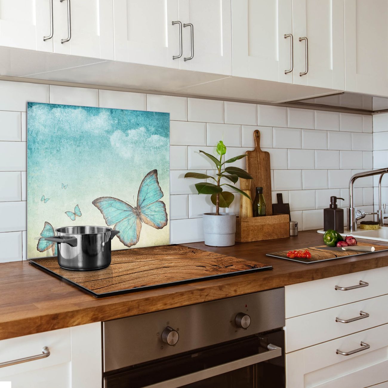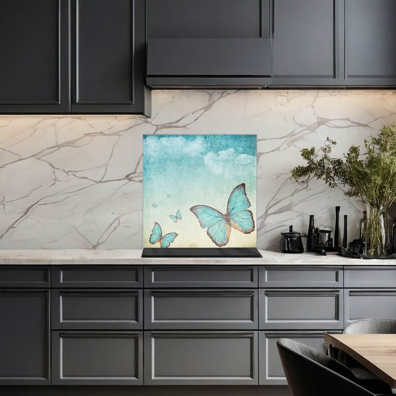 Küchenrückwand Glas Motiv Blaue Schmetterlinge