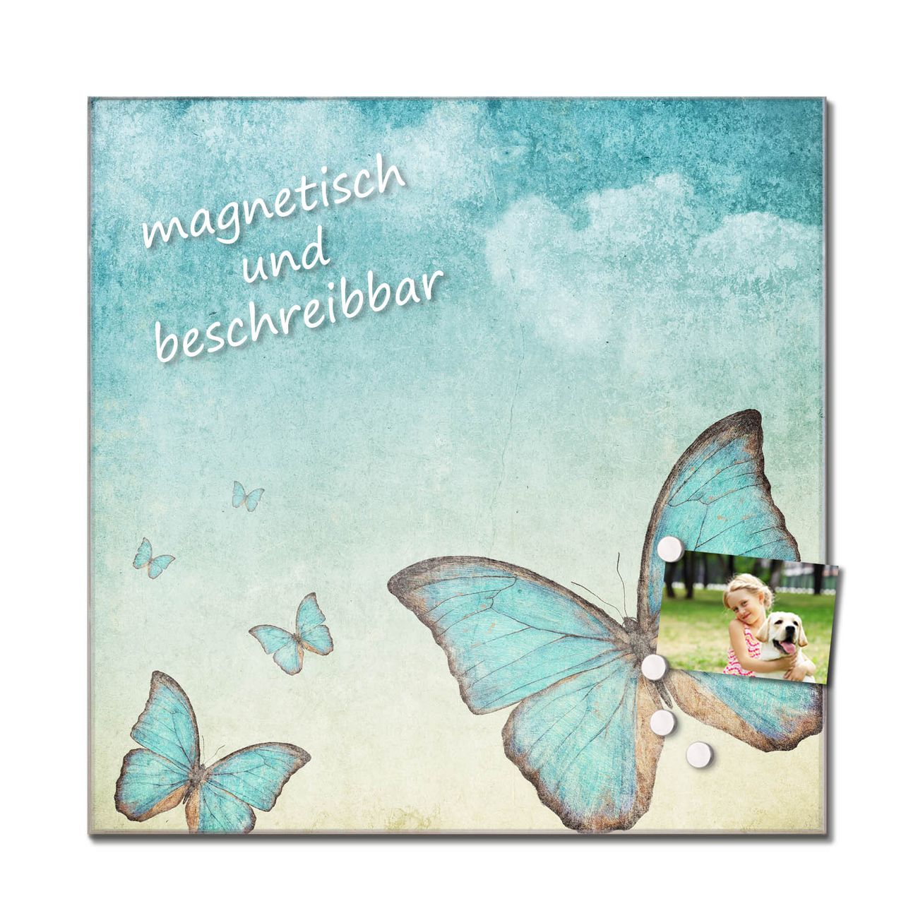 Bitte beachten Sie, dass ausschließlich spezielle Magnete an der Glastafel haften! Wir empfehlen banjado Neodym Magnete, diese sind durch uns auf Wirksamkeit geprüft.