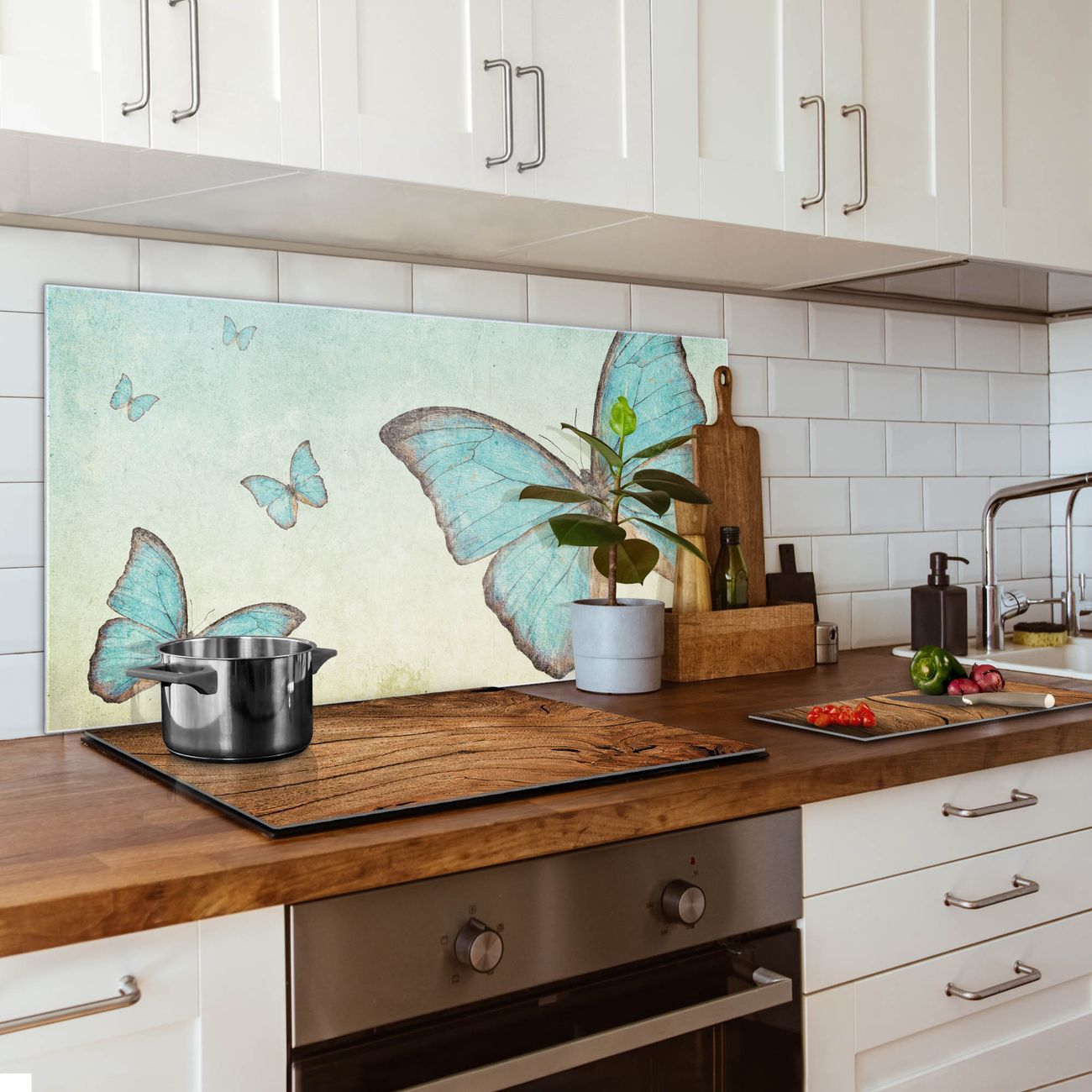 Küchenrückwand Glas Motiv Blaue Schmetterlinge